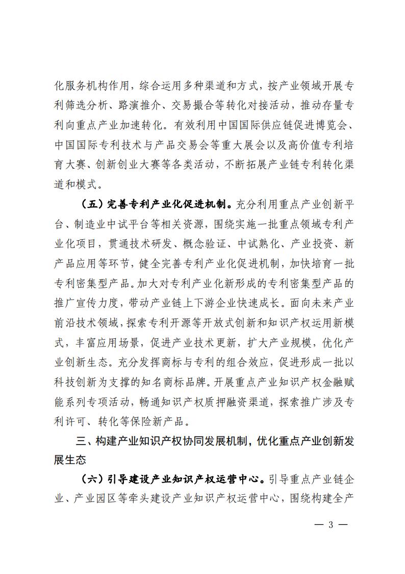 國家知識產權局 教育部 科技部 工業和信息化部 國務院國資委 市場監管總局 金融監管總局 中國科學院 中國貿促會關于印發《關于推進重點產業知識產權強鏈增效的若干措施》的通知