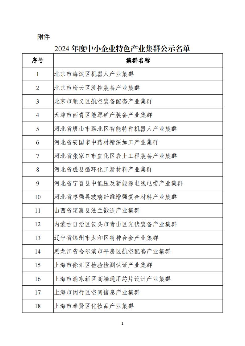 關于2024年度中小企業(yè)特色產業(yè)集群名單的公示