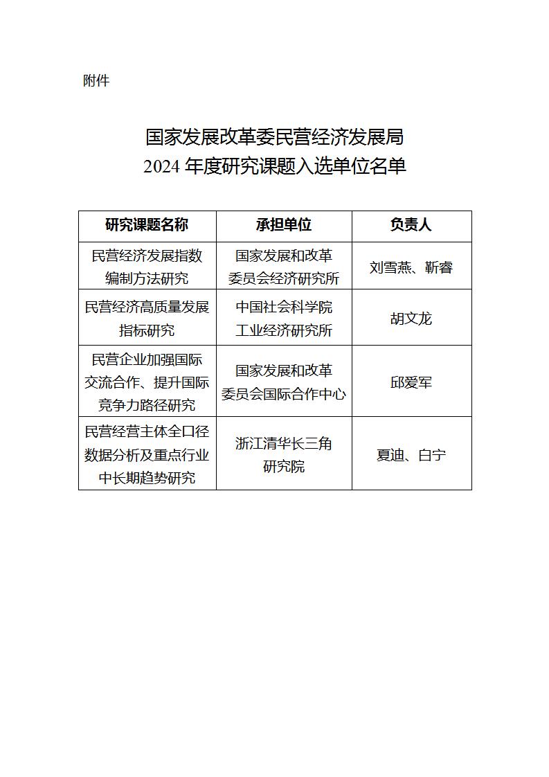 國家發(fā)展改革委民營經(jīng)濟(jì)發(fā)展局關(guān)于2024年度研究課題入選單位的公告
