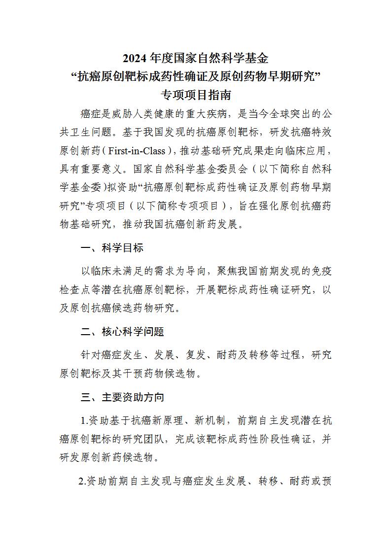 附件:1.抗癌原創(chuàng)靶標(biāo)成藥性確證及原創(chuàng)藥物早期研究專項(xiàng)項(xiàng)目指南