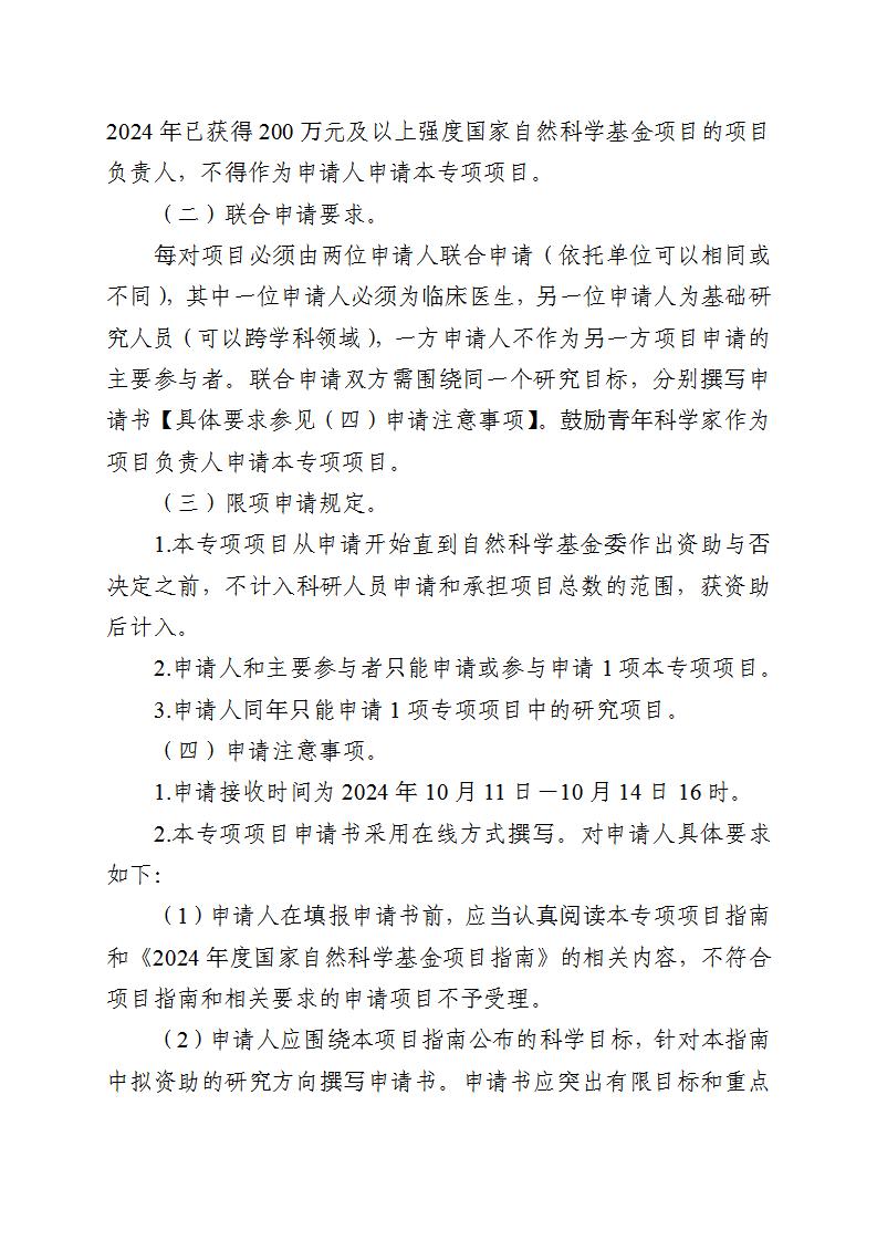 國家自然科學(xué)基金委員會醫(yī)學(xué)科學(xué)部現(xiàn)發(fā)布2024年度專項(xiàng)項(xiàng)目指南(第一批),請申請人和依托單位按項(xiàng)目指南中的要求及注意事項(xiàng)申請。