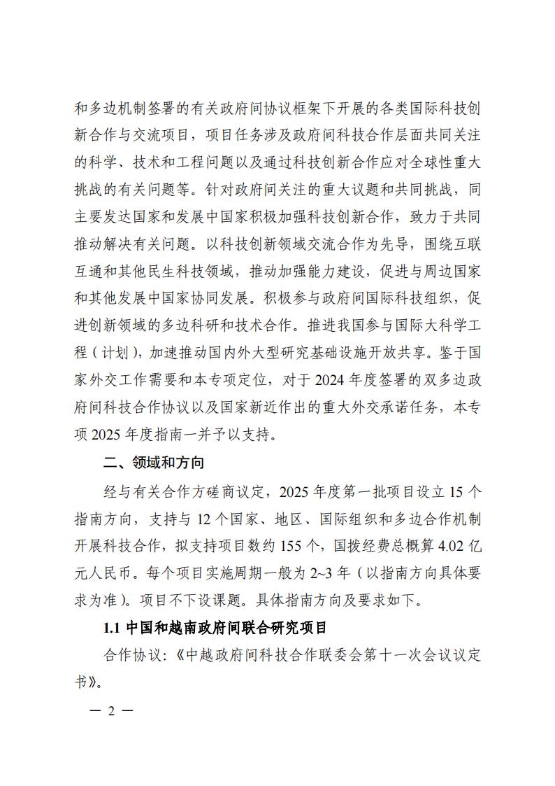 科技部|國家重點研發計劃“政府間國際科技創新合作”等2個重點專項2025年度有關批次項目申報指南征求意見