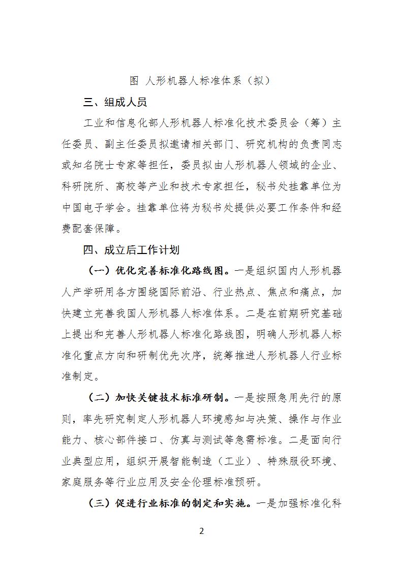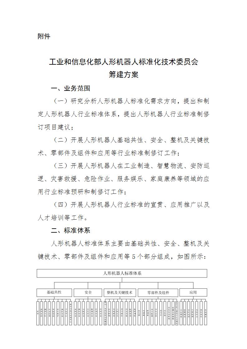 工業和信息化部人形機器人標準化技術委員會籌建方案公示