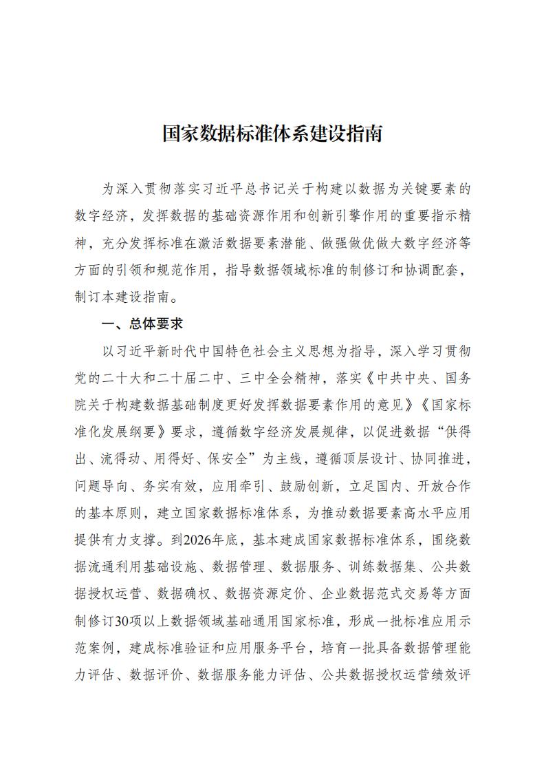 為深入學習貫徹黨的二十大和二十屆二中、三中全會精神,落實《中共中央、國務院關于構建數據基礎制度更好發揮數據要素作用的意見》要求,充分發揮標準在激活數據要素潛能、做強做優做大數字經濟等方面的規范和引領作用,國家發展改革委、國家數據局、中央網信辦、工業和信息化部、財政部、國家標準委組織編制了《國家數據標準體系建設指南》。現印發給你們,請各地區、各行業結合實際,抓好落實。