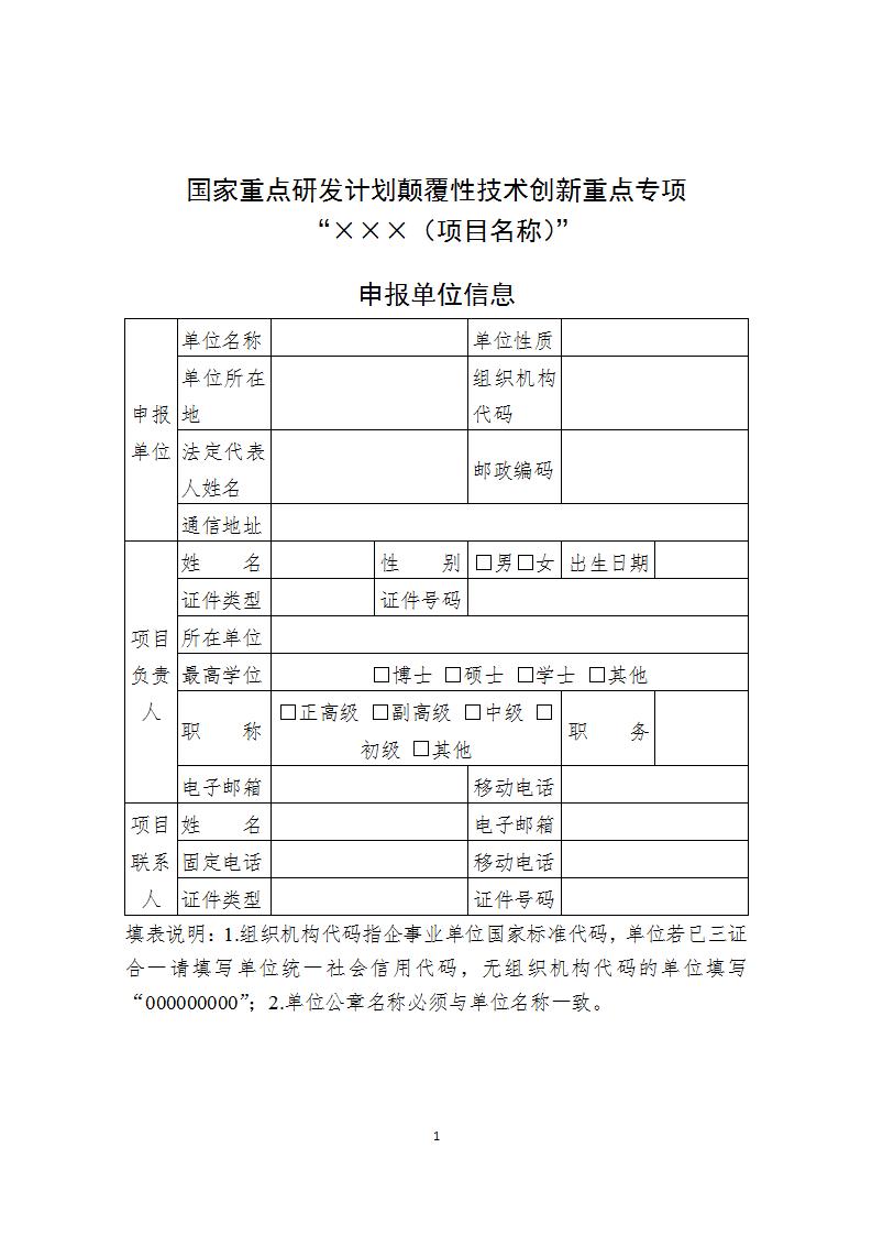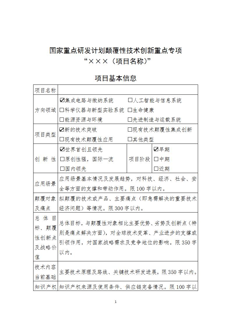 國家重點研發(fā)計劃顛覆性技術創(chuàng)新重點專項2024年度項目申報指引