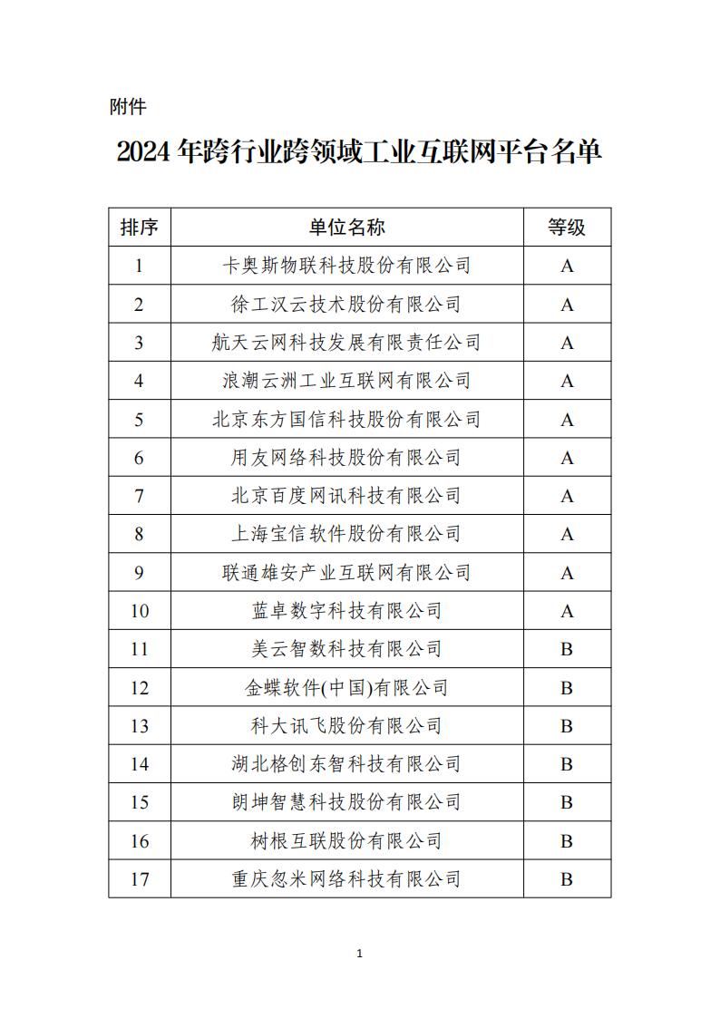 為貫徹黨的二十屆三中全會關于“發展工業互聯網”的決策部署,按照《工業和信息化部辦公廳關于組織開展2024年跨行業跨領域工業互聯網平臺動態評價工作的通知》(工信廳信發函〔2024〕293號)的工作安排,經過地方初審、企業答辯、現場核查等環節,形成了2024年跨行業跨領域工業互聯網平臺動態評價結果。