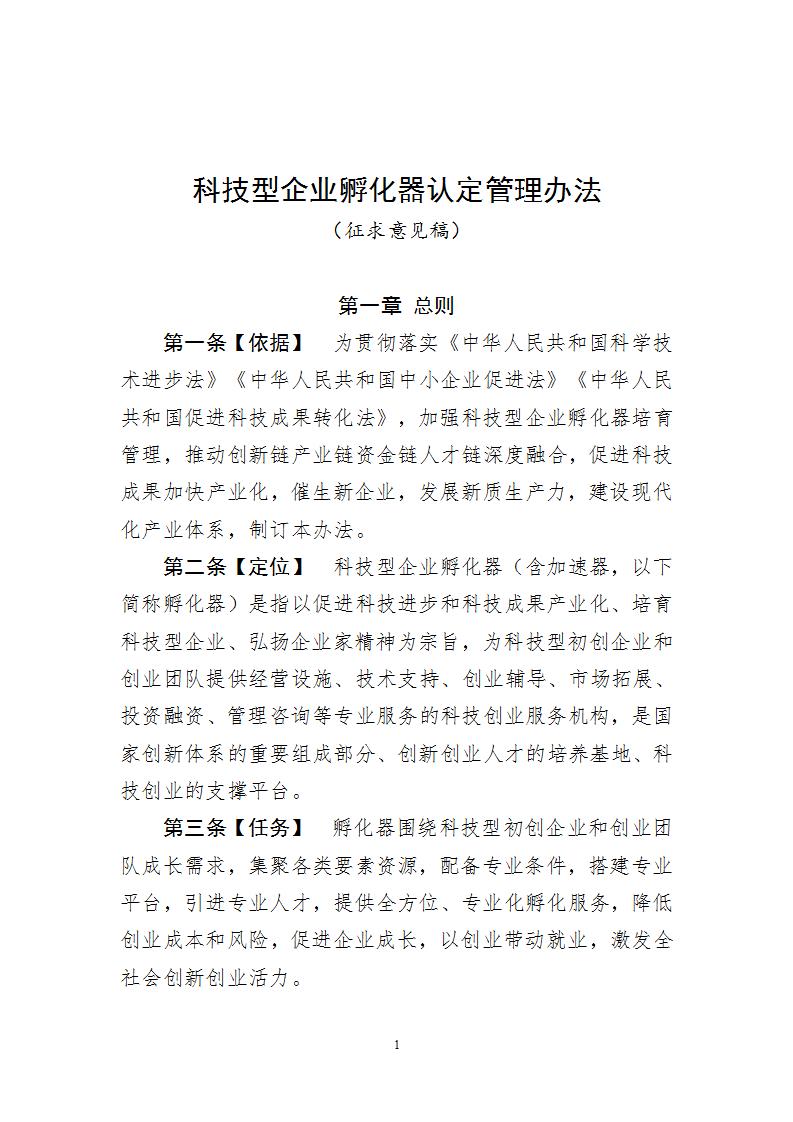 公開征求《科技型企業孵化器認定管理辦法(征求意見稿)》的意見