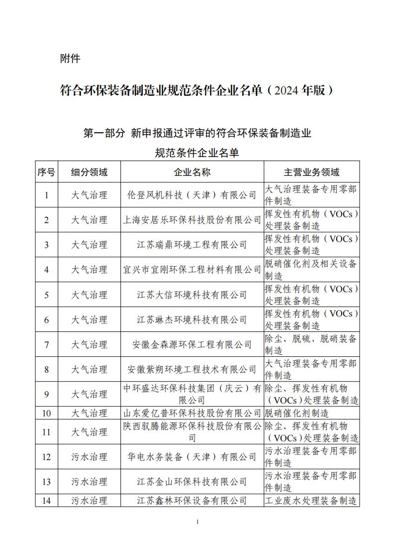 附件:符合環(huán)保裝備制造業(yè)規(guī)范條件企業(yè)名單(2024年版)