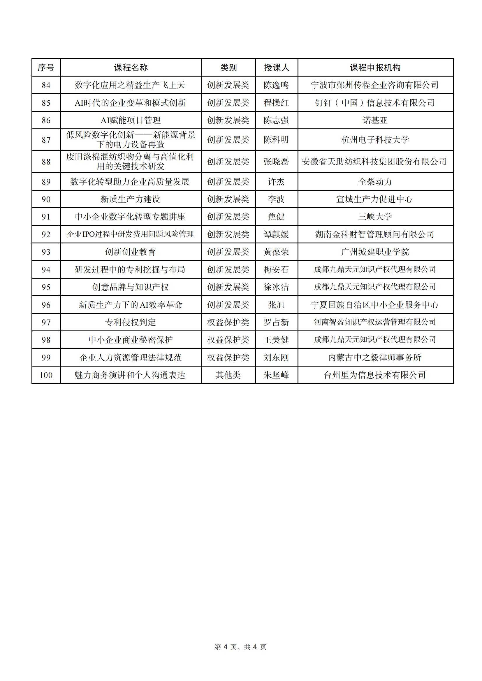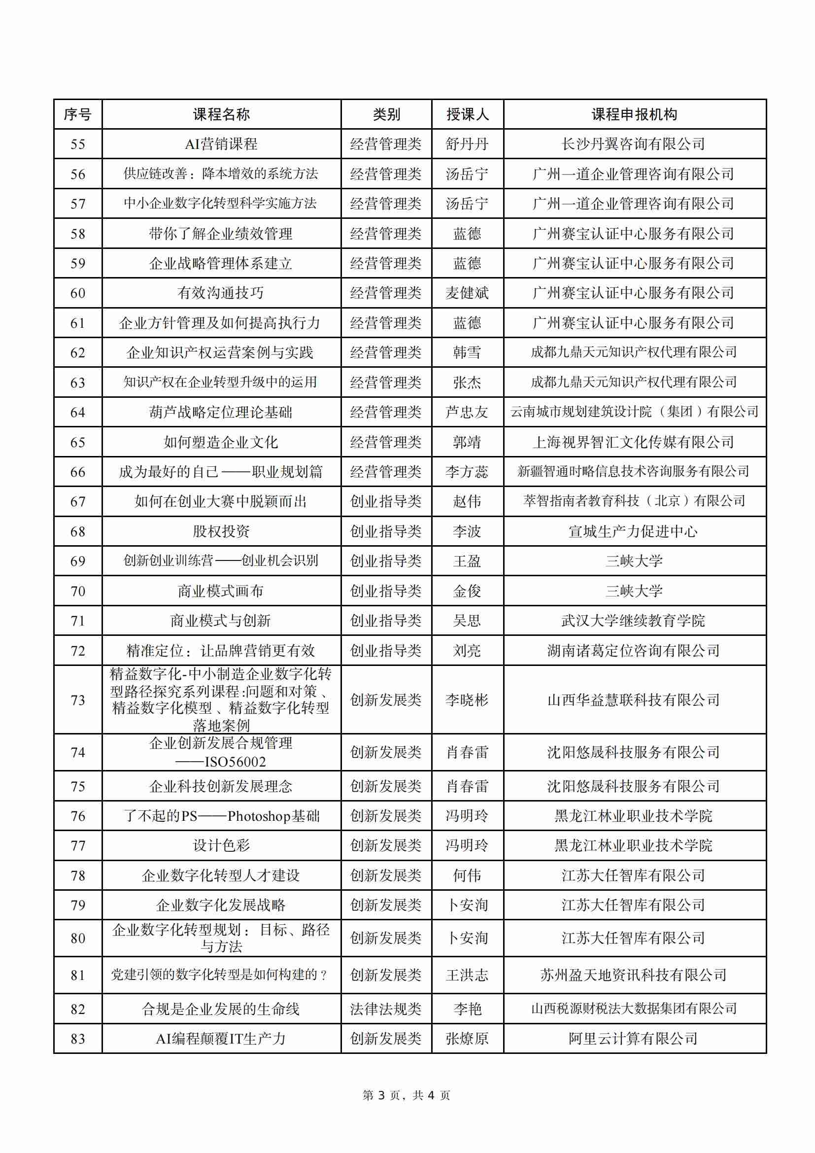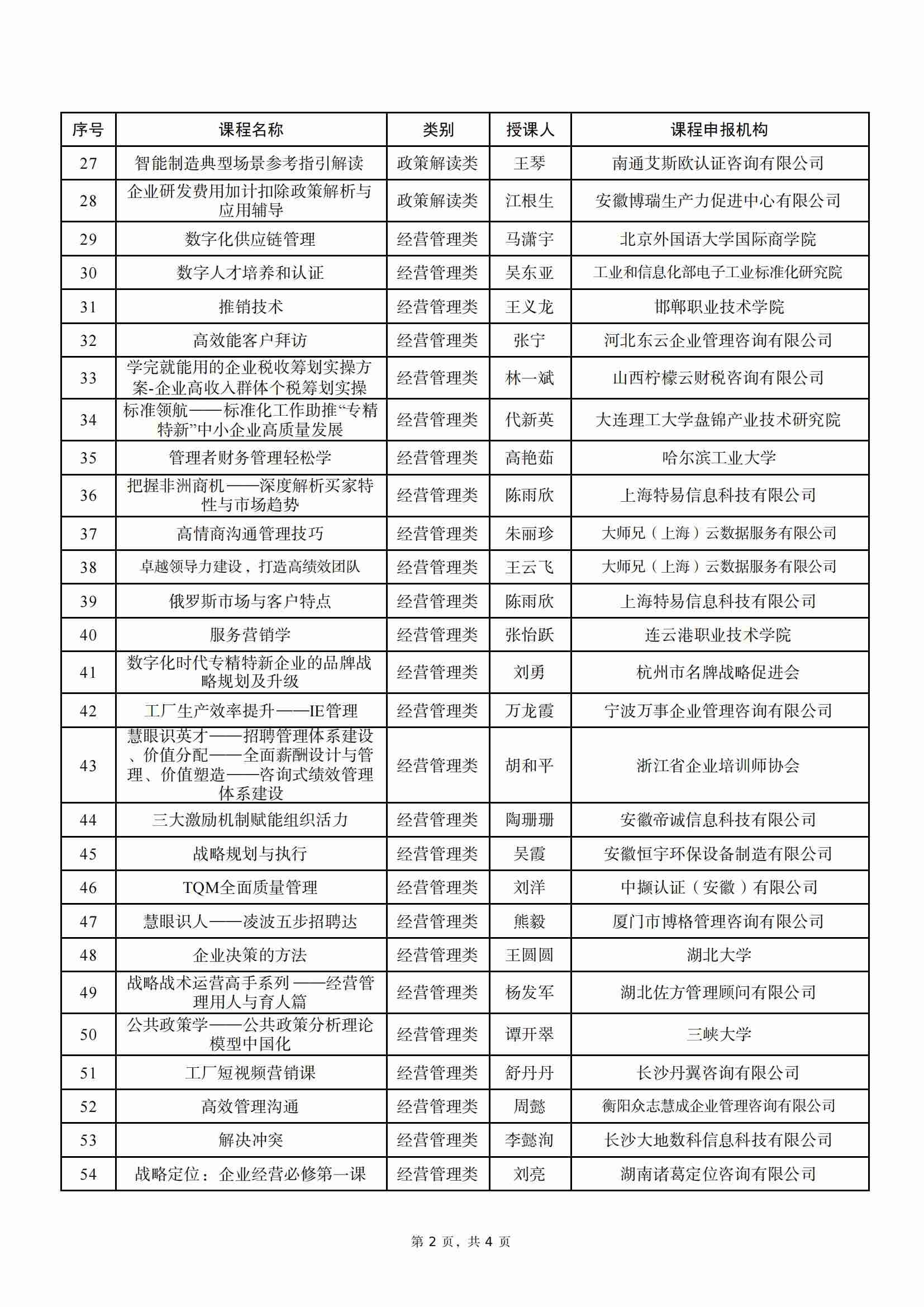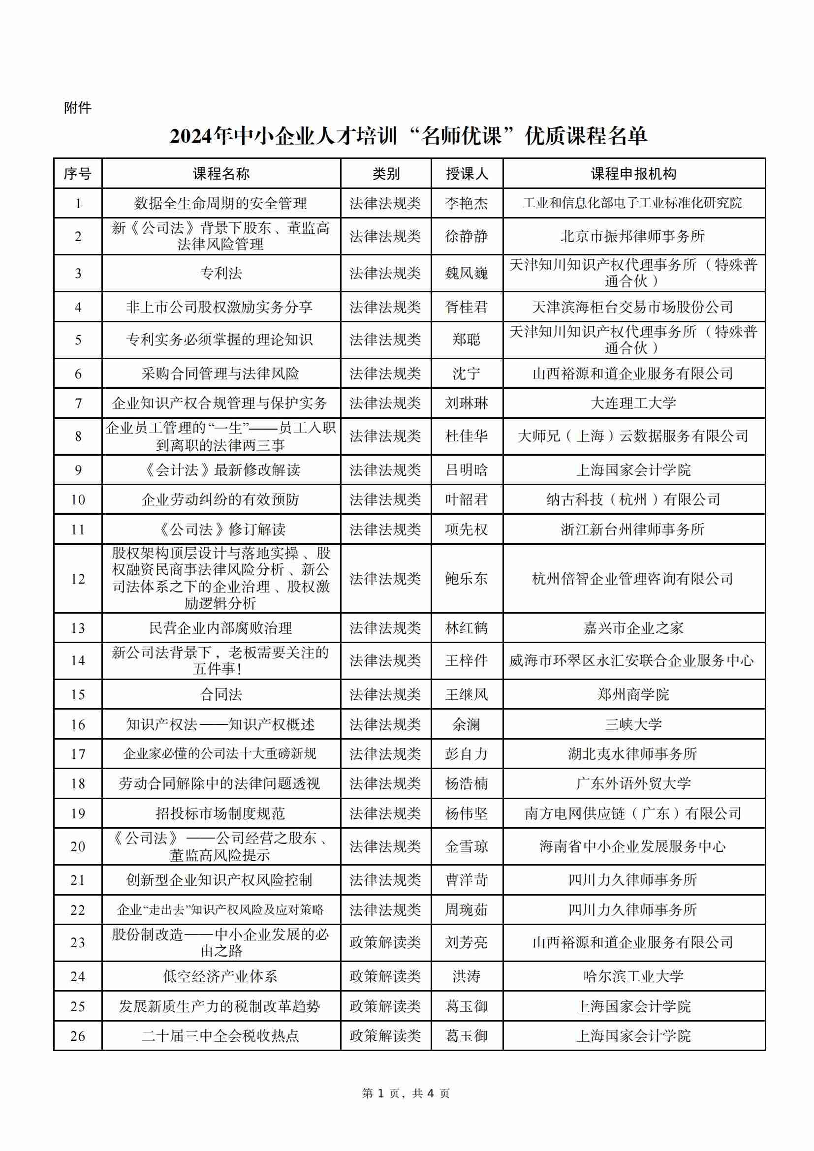 附件:2024年中小企業(yè)人才培訓(xùn)”名師優(yōu)課“優(yōu)質(zhì)課程名單