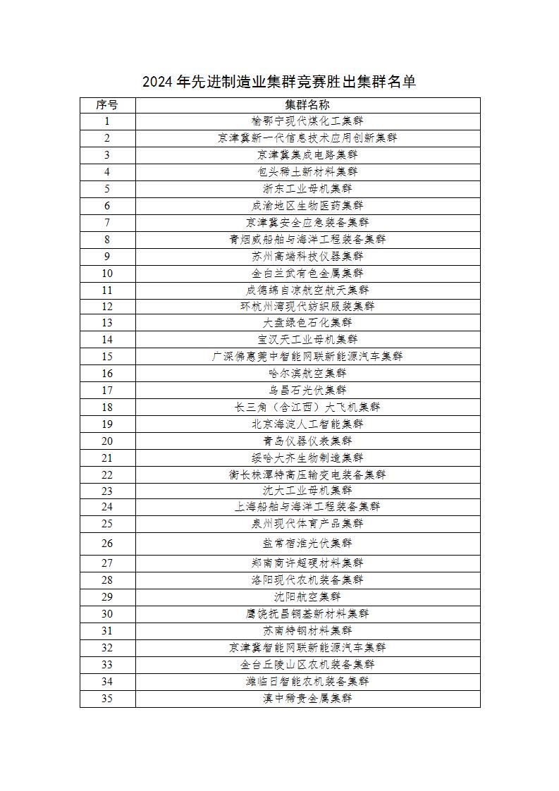 2024年先進(jìn)制造業(yè)集群競(jìng)賽勝出集群名單公示
