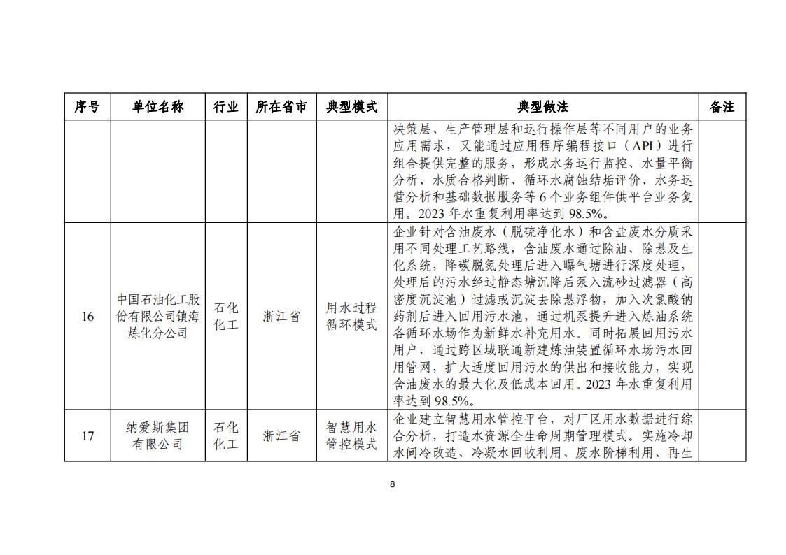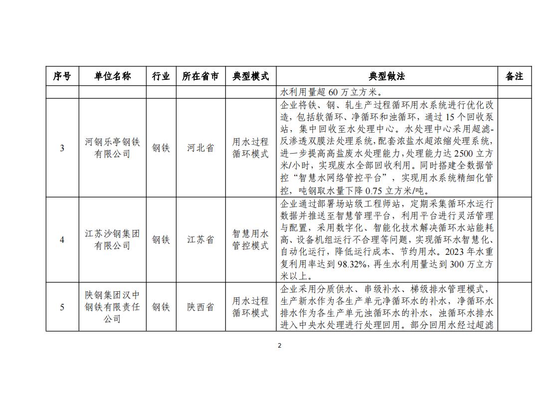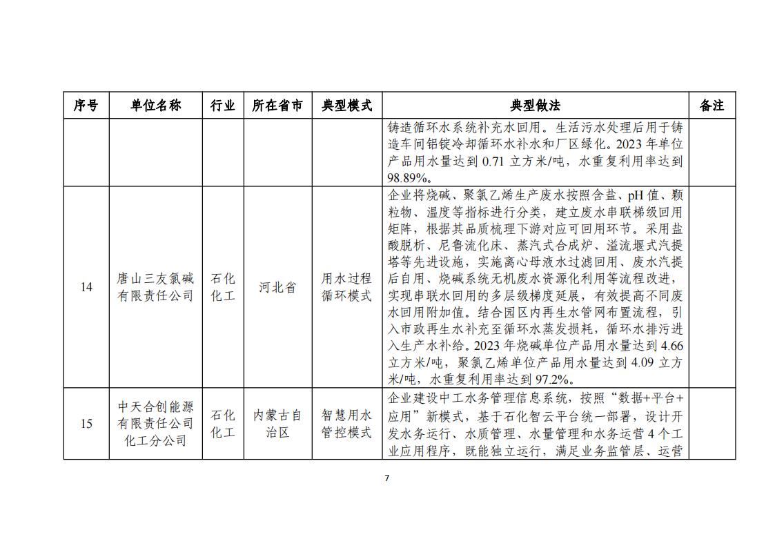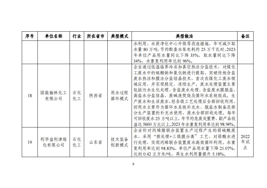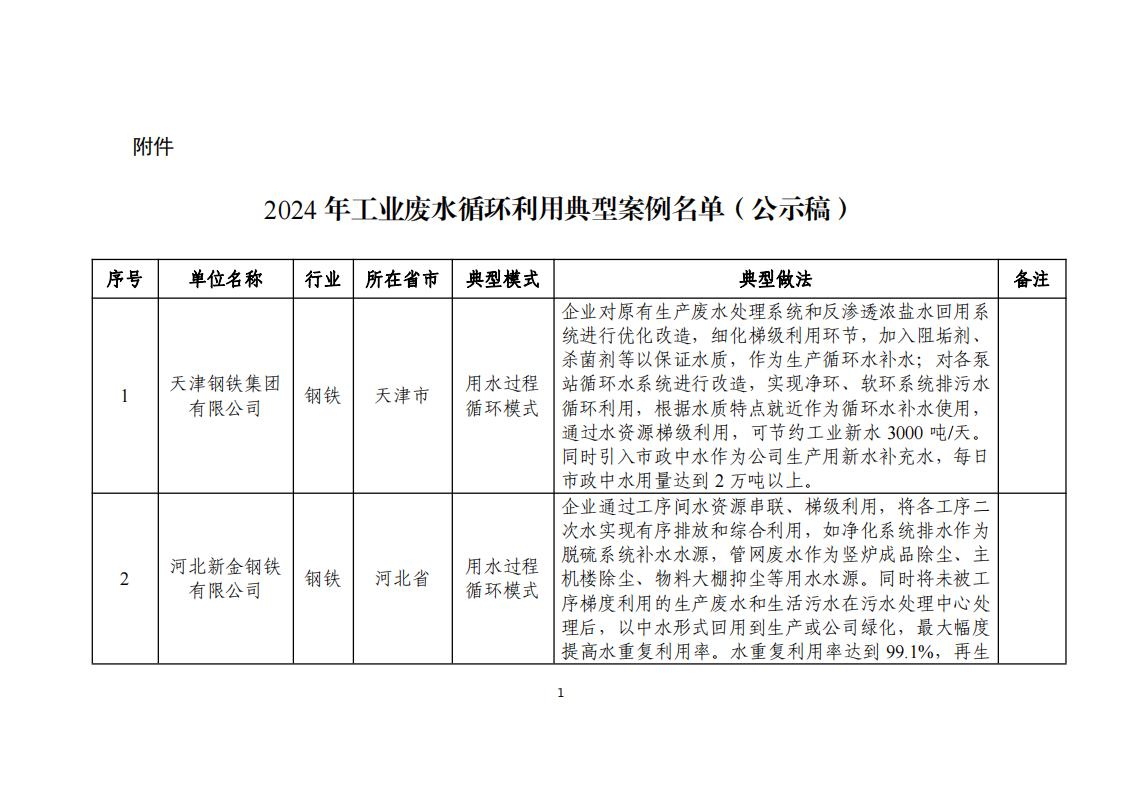 附件:2024年工業(yè)廢水循環(huán)利用典型案例名單