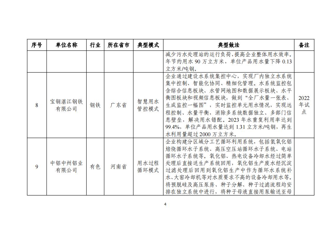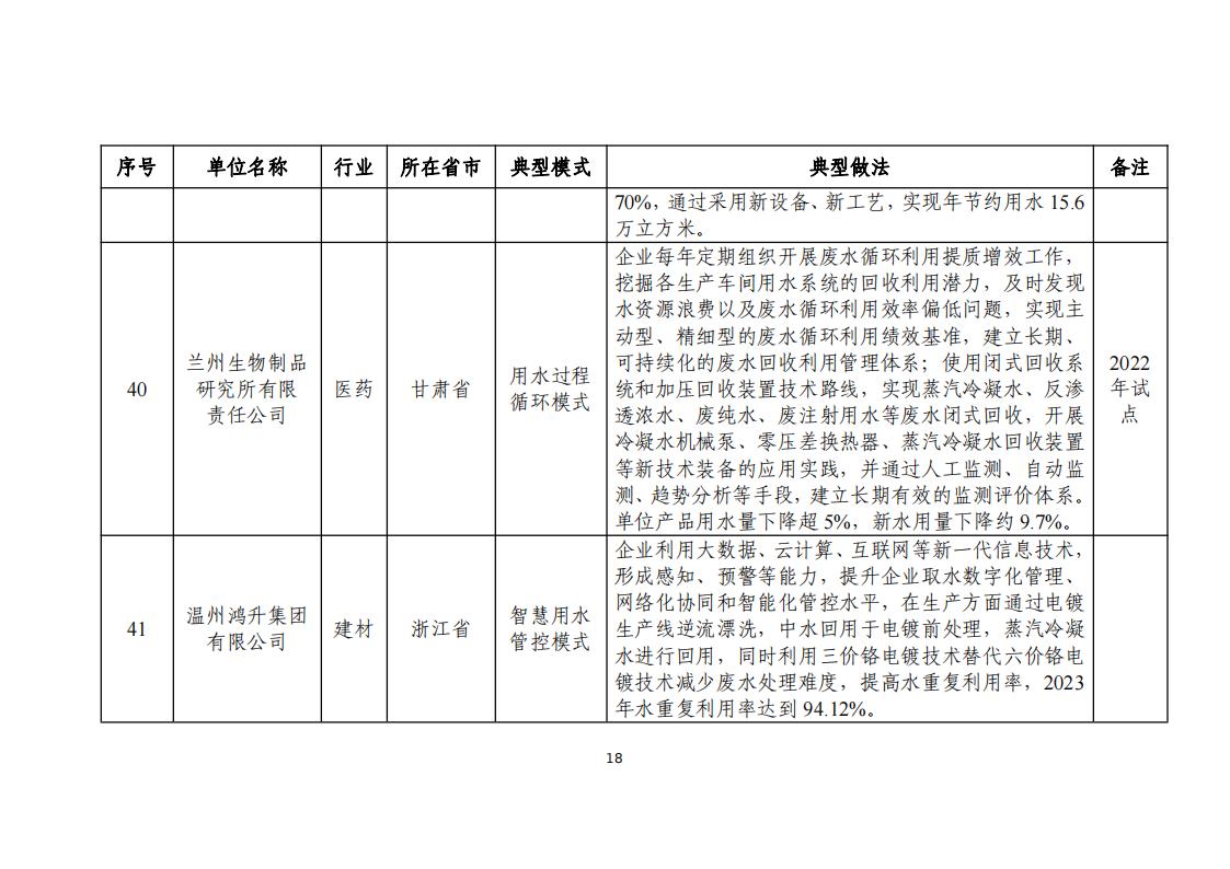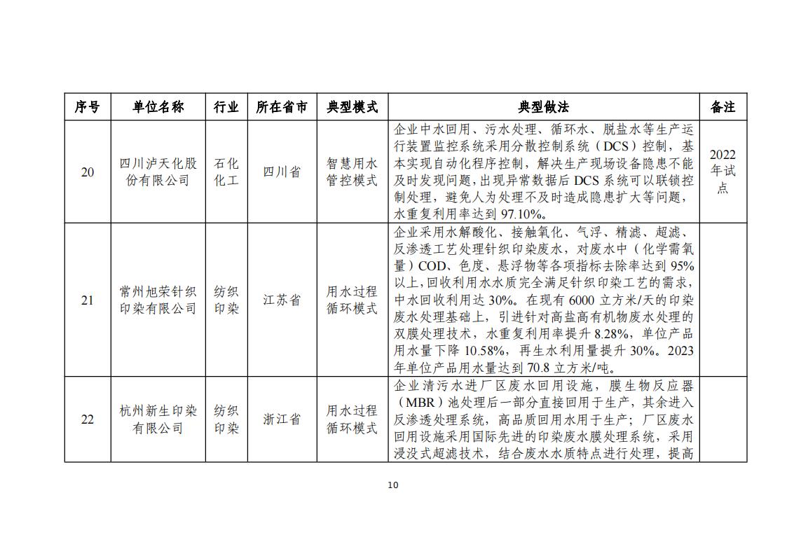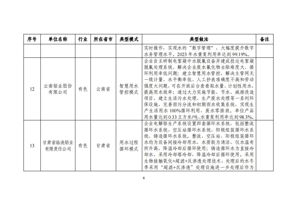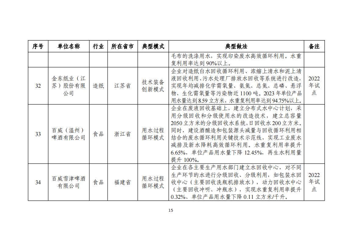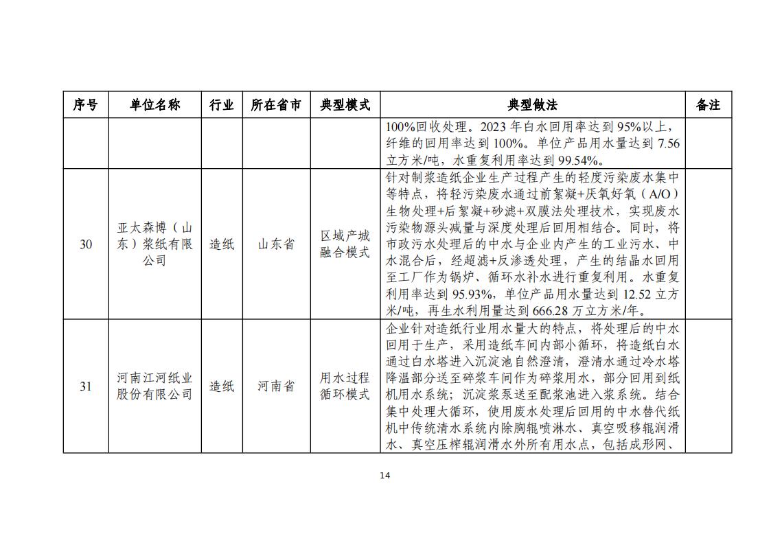 附件:2024年工業(yè)廢水循環(huán)利用典型案例名單