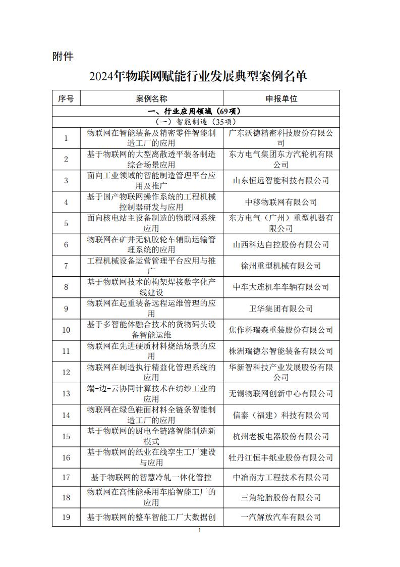 附件:2024年物聯網賦能行業發展典型案例名單