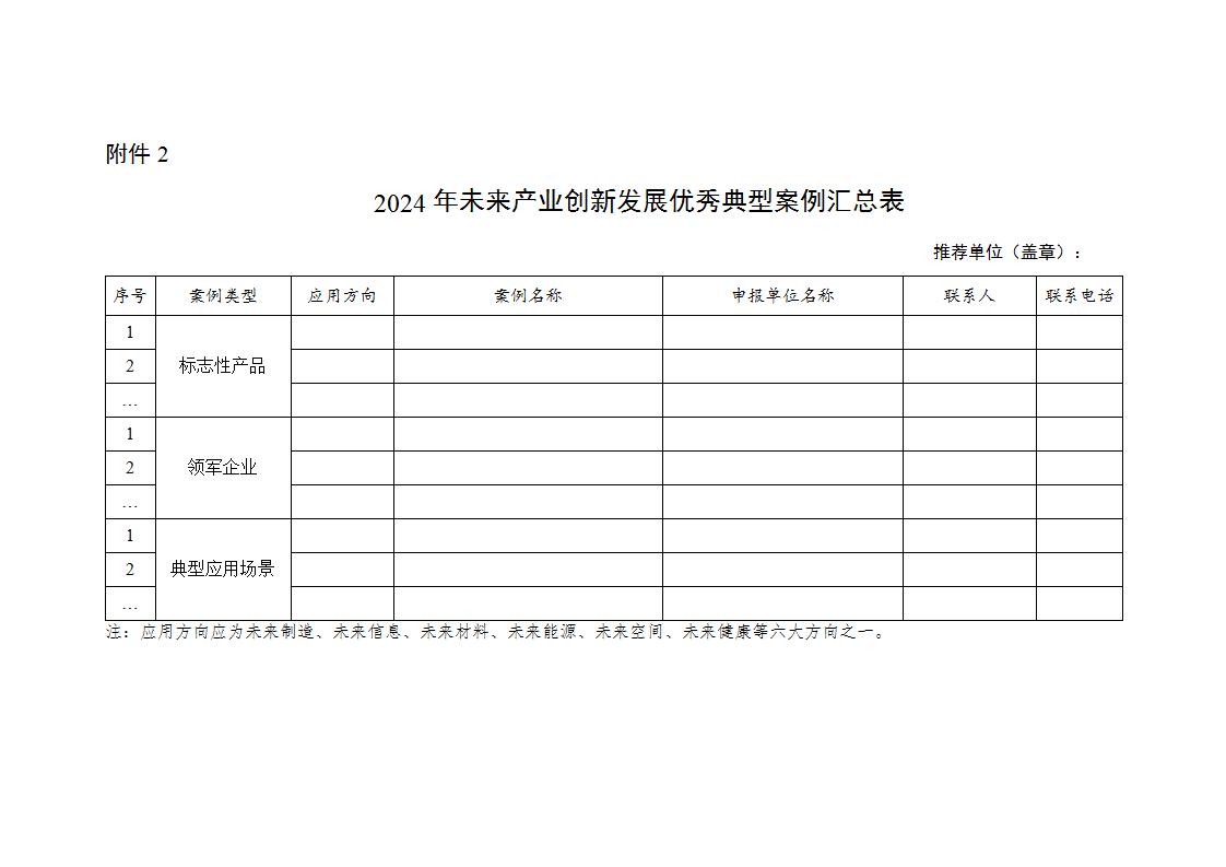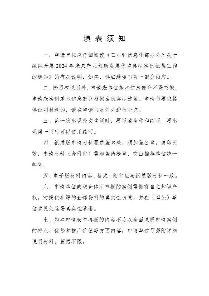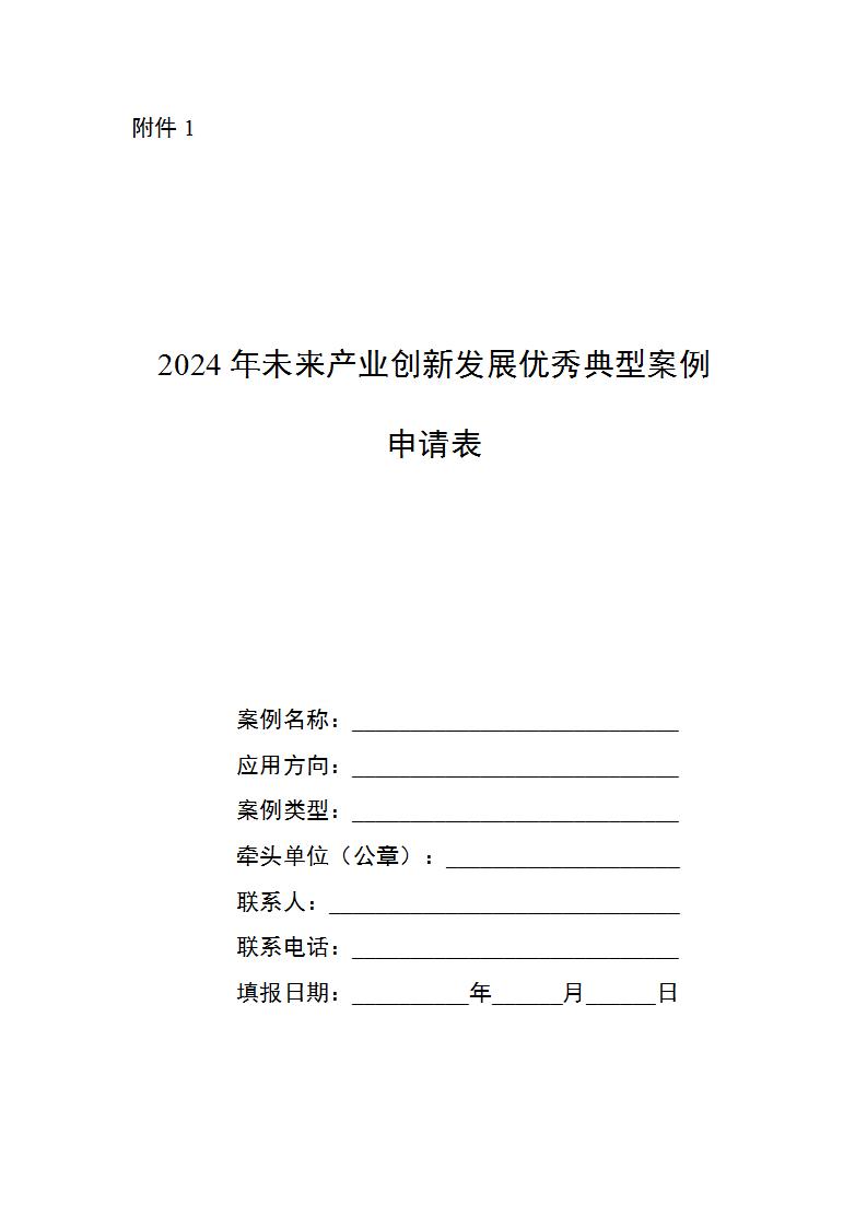 (一)申報主體填寫《2024年未來產業創新發展優秀典型案例申請表》(見附件1),向所在省級工業和信息化主管部門提交申請材料。