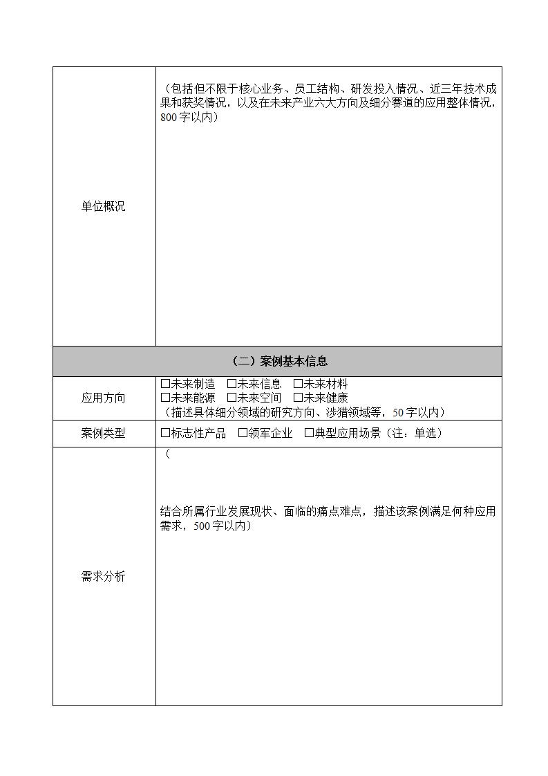 聚焦未來制造、未來信息、未來材料、未來能源、未來空間、未來健康等六大方向(參見《實施意見》),面向社會征集以下三類典型案例。