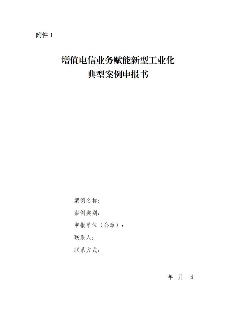 附件:1.增值電信業務賦能新型工業化典型案例申報書