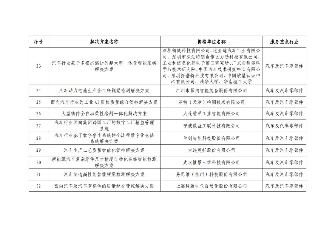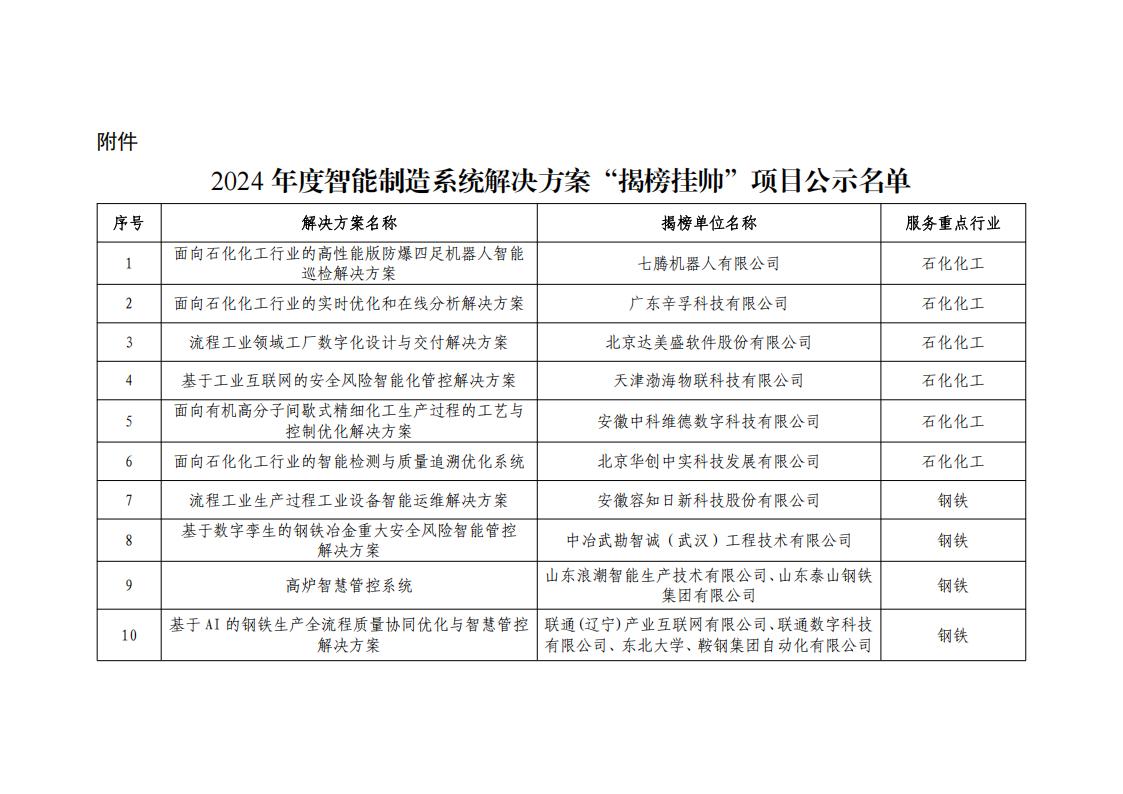 附件:2024年度智能制造系統解決方案“揭榜掛帥”項目公示名單