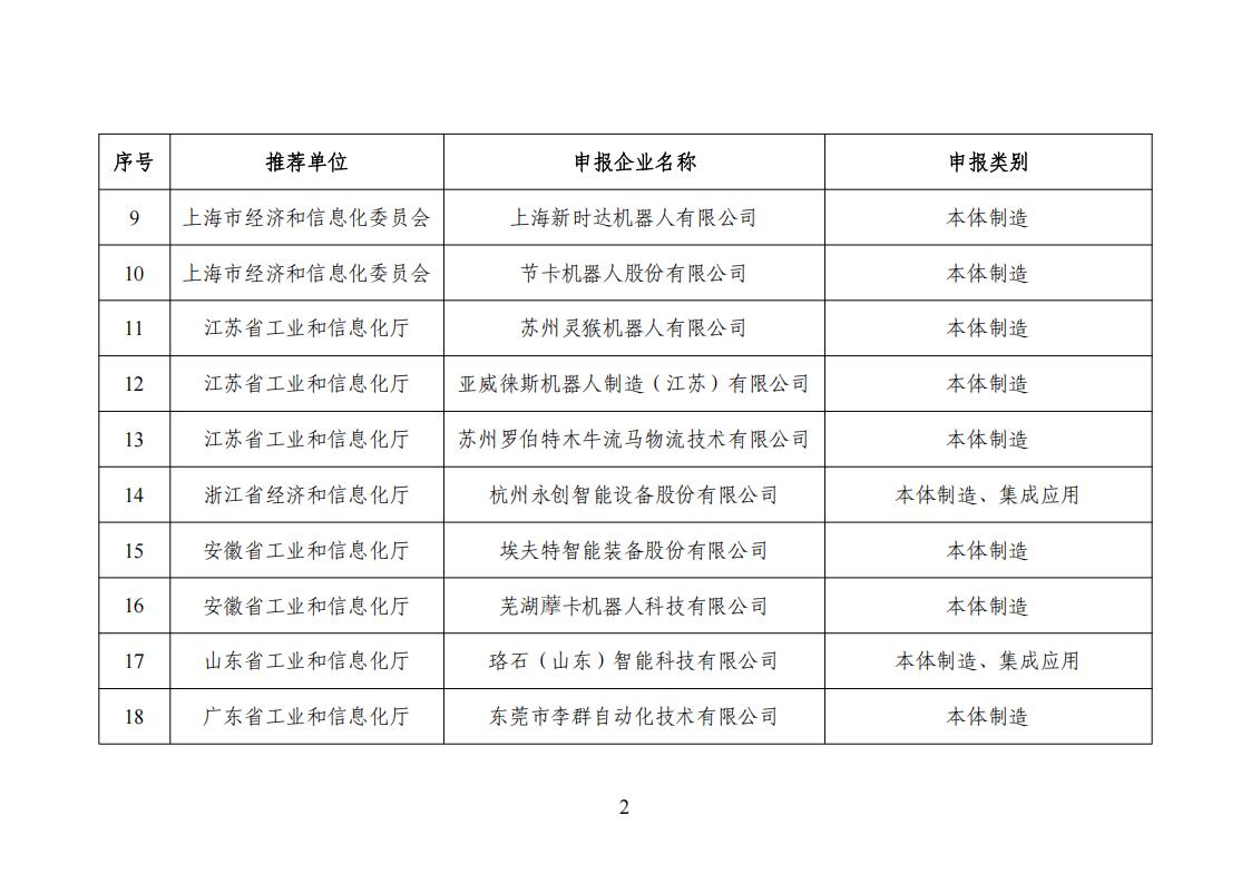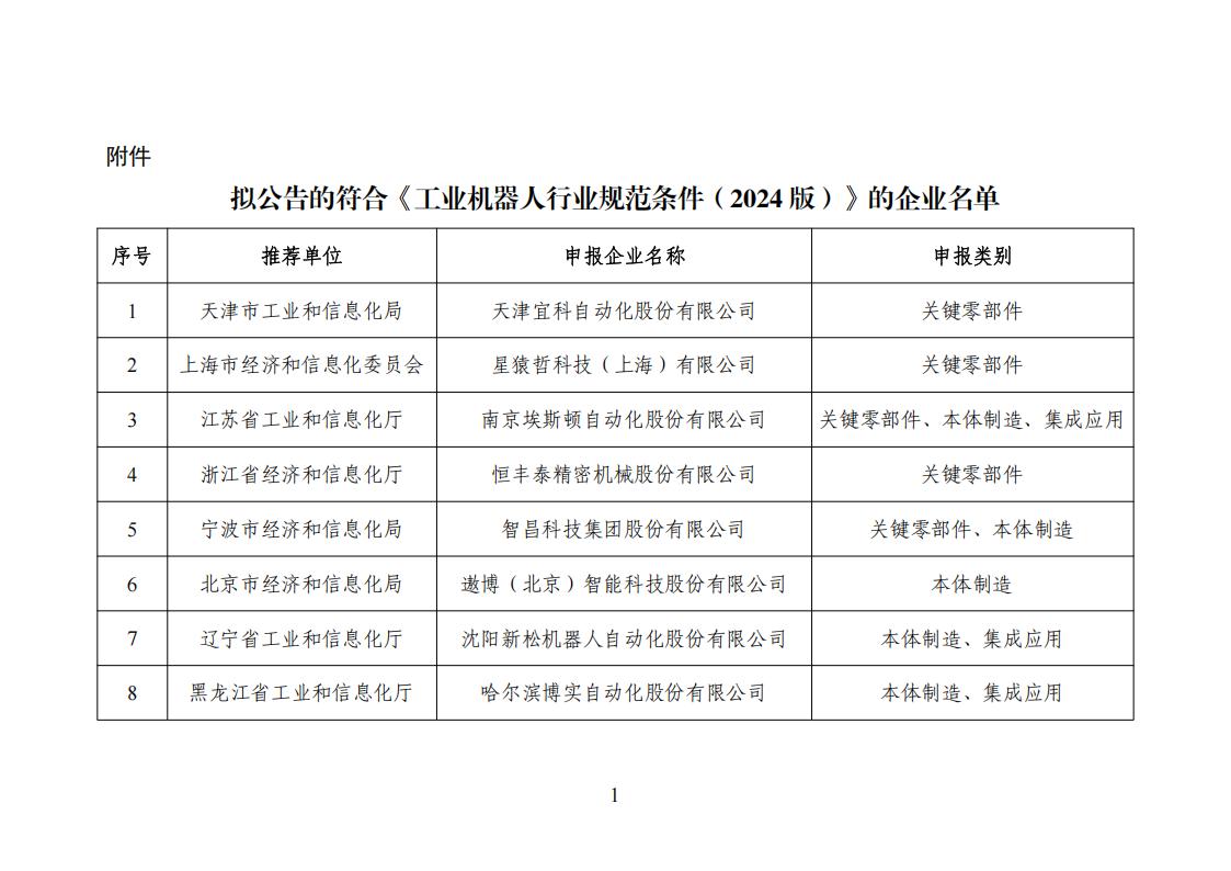 擬公告的符合《工業機器人行業規范條件(2024版)》的企業名單