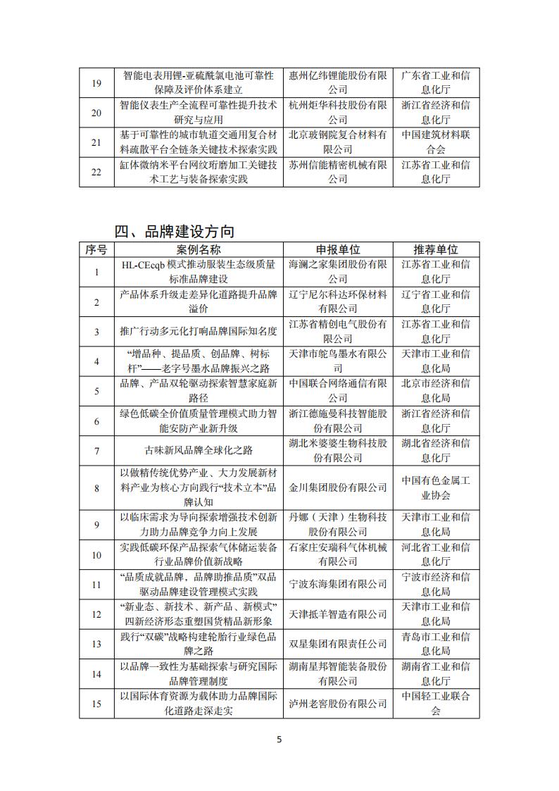 工信部|2024年度工業和信息化質量提升與品牌建設典型案例擬入選名單公示