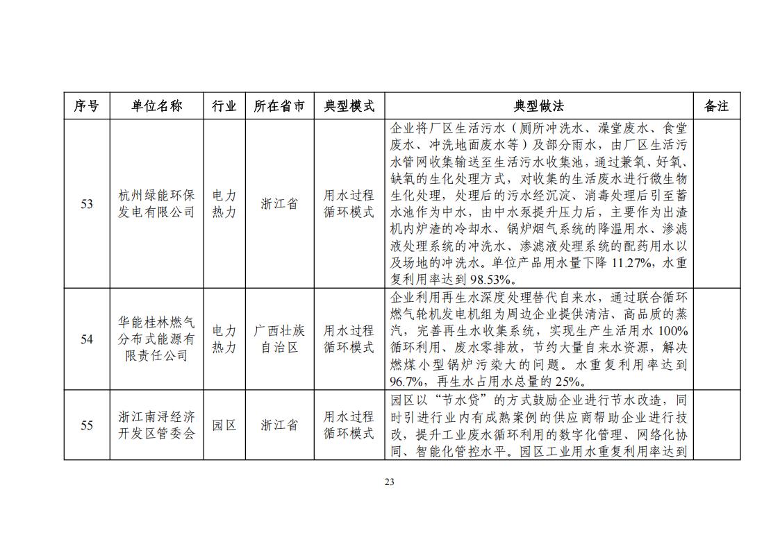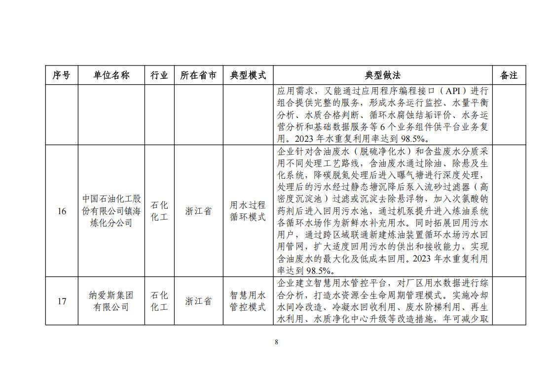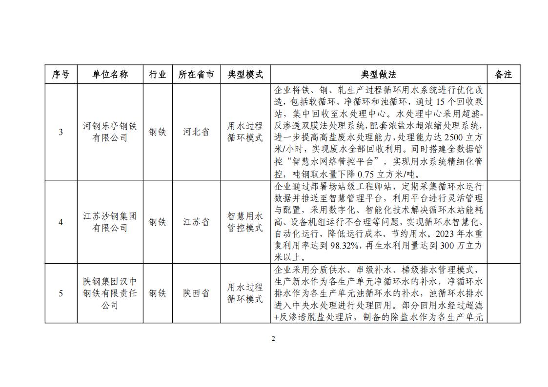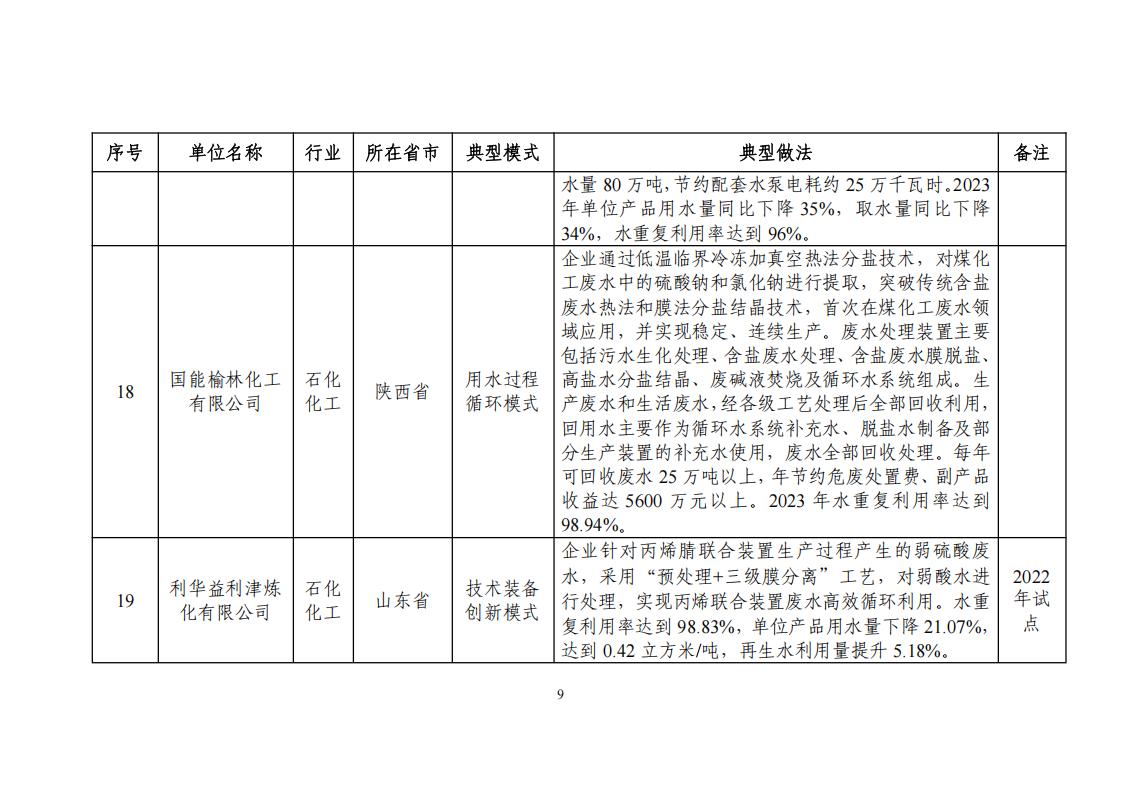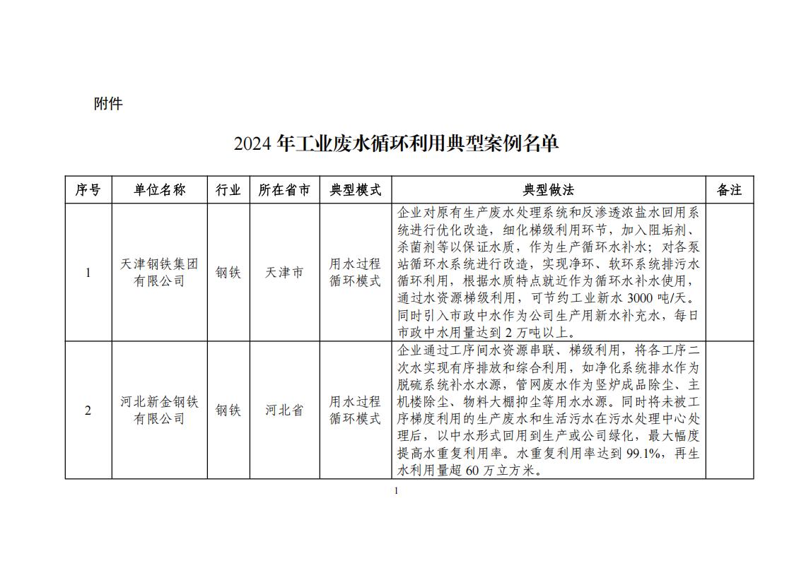 關于公布2024年工業廢水循環利用典型案例名單的通知