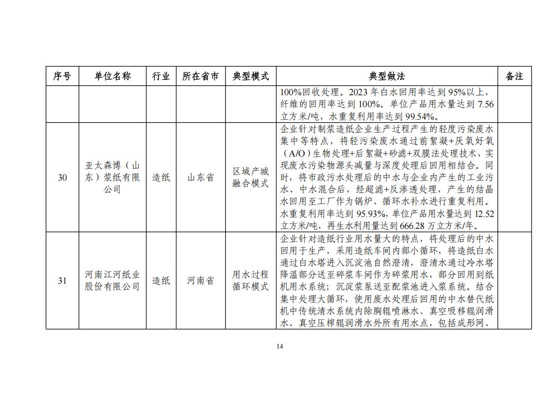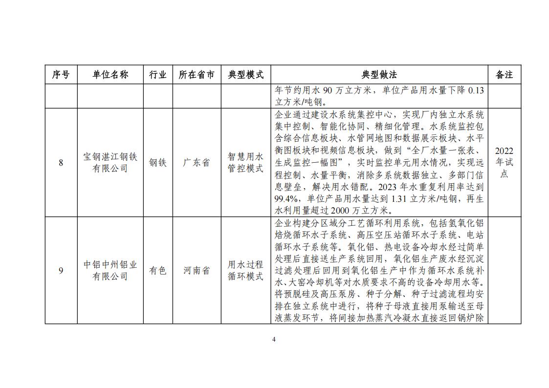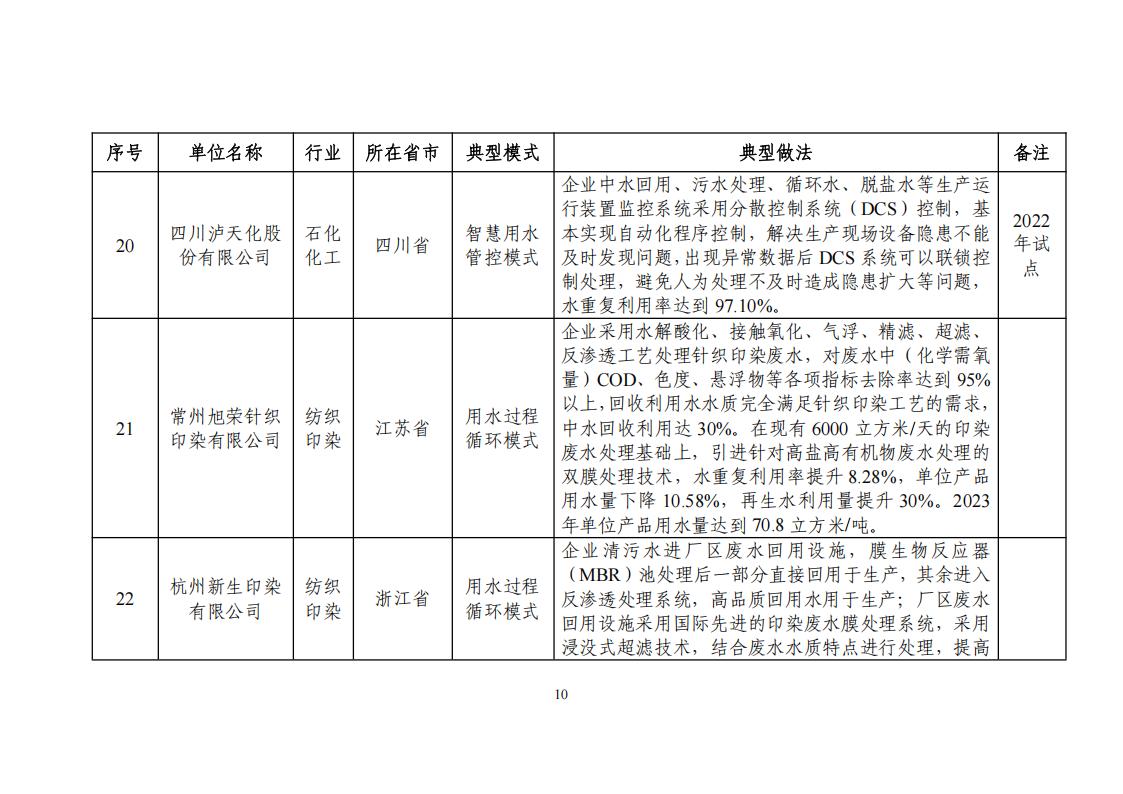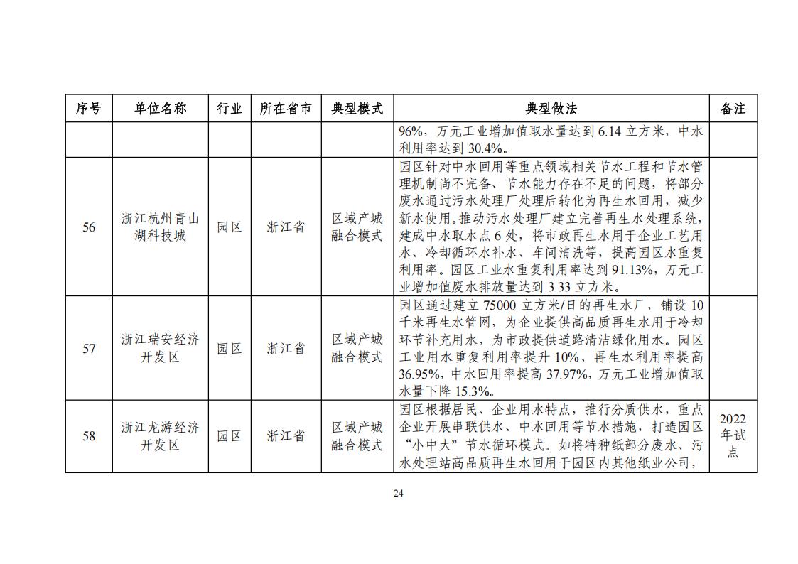 關于公布2024年工業廢水循環利用典型案例名單的通知