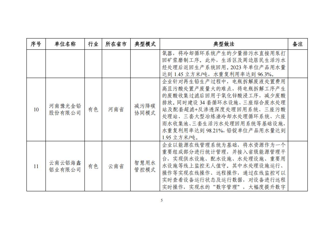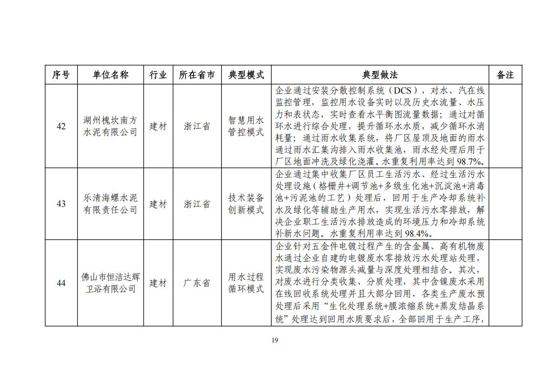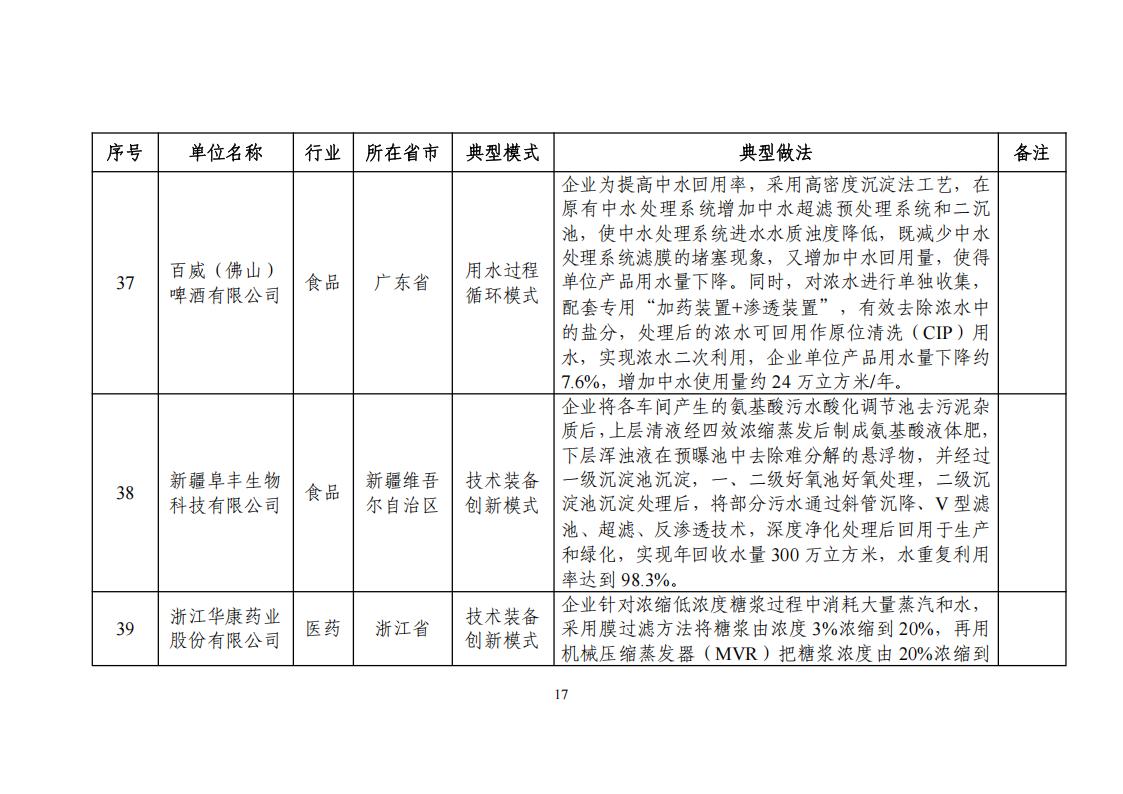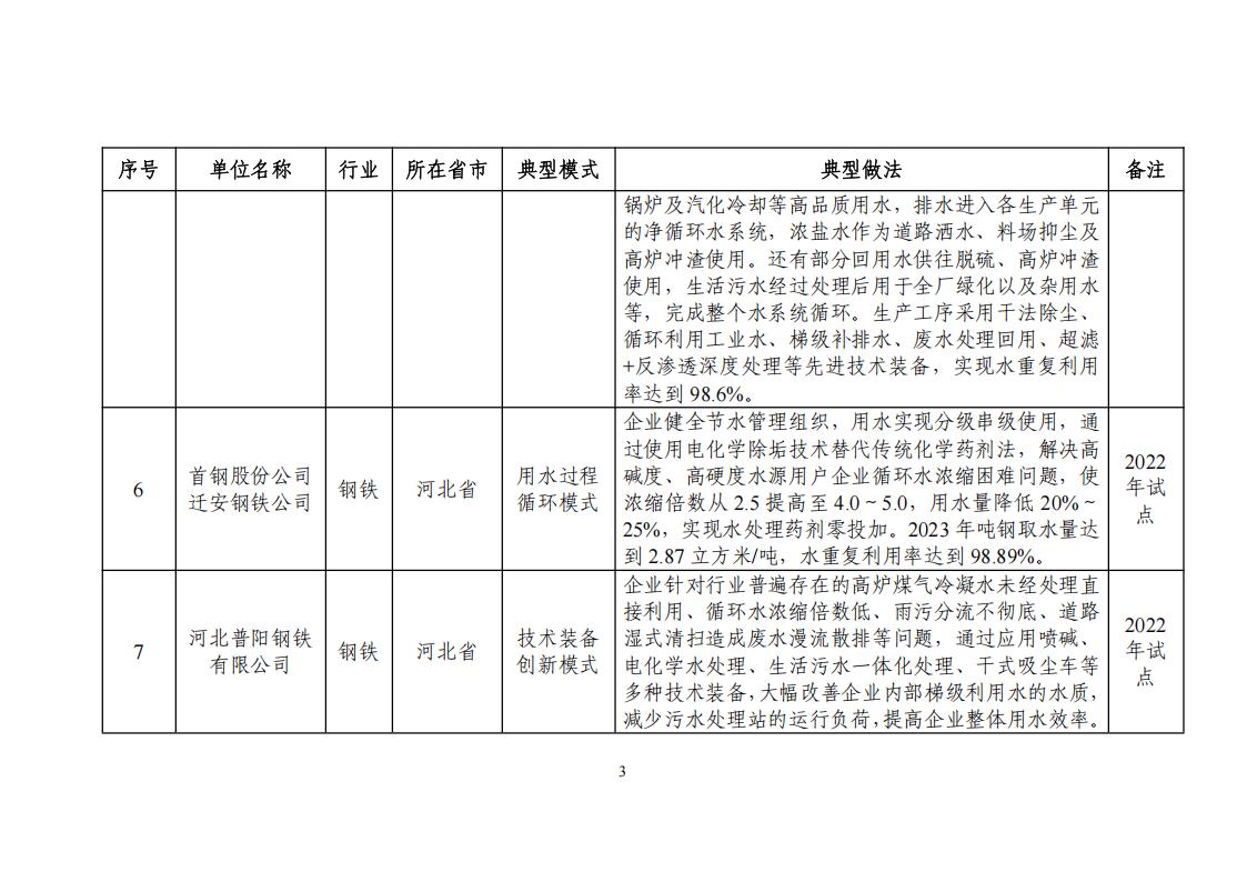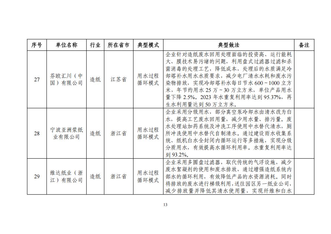 關于公布2024年工業廢水循環利用典型案例名單的通知
