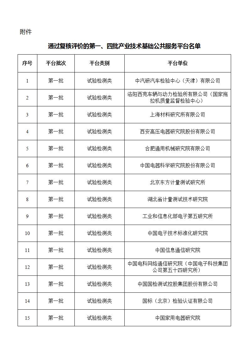 工信部|關于公布通過復核評價的第一、四批產業技術基礎公共服務平臺名單的通知