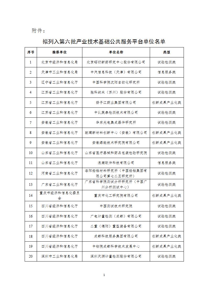 擬列入工業(yè)和信息化部第六批產(chǎn)業(yè)技術(shù)基礎(chǔ)公共服務(wù)平臺名錄的建議名單公示