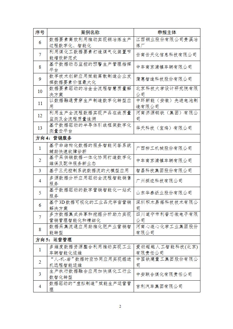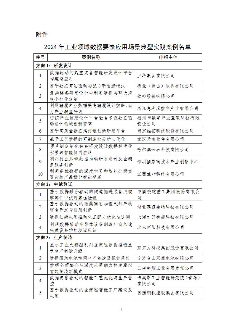 關于2024年工業領域數據要素應用場景典型實踐案例名單的公示
