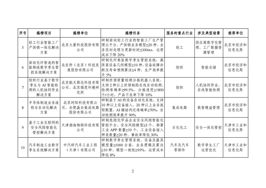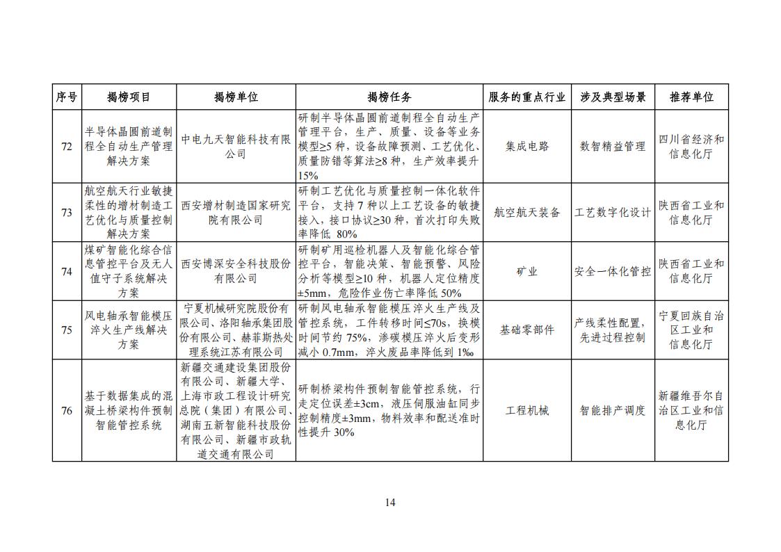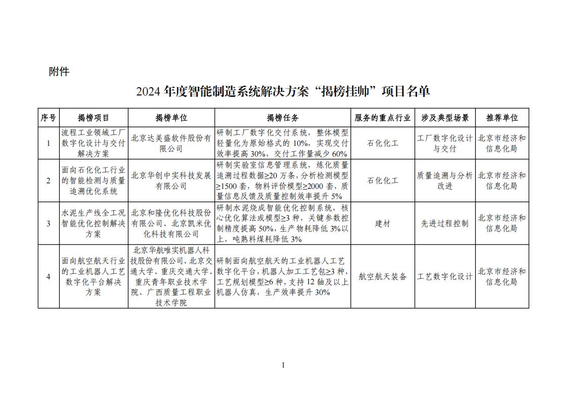 兩部門關(guān)于公布2024年度智能制造系統(tǒng)解決方案“揭榜掛帥”項目名單的通知