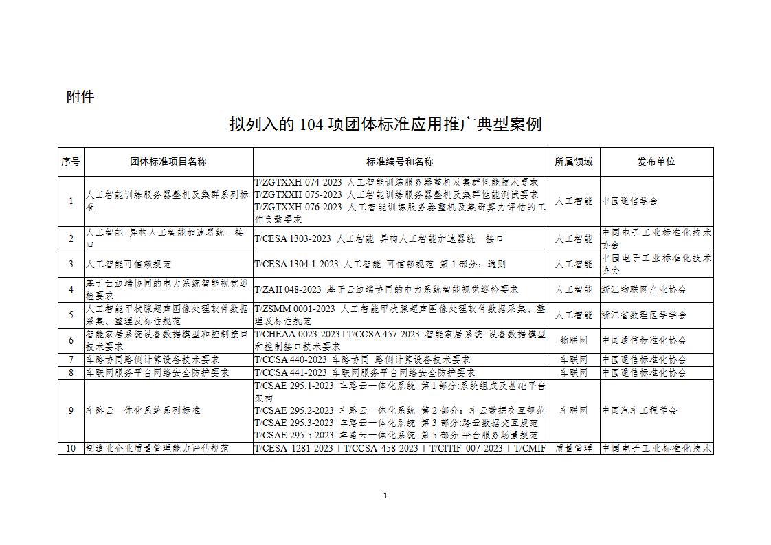 公開征求《人工智能訓練服務器整機及集群系列標準》等104項團體標準應用推廣典型案例的意見
