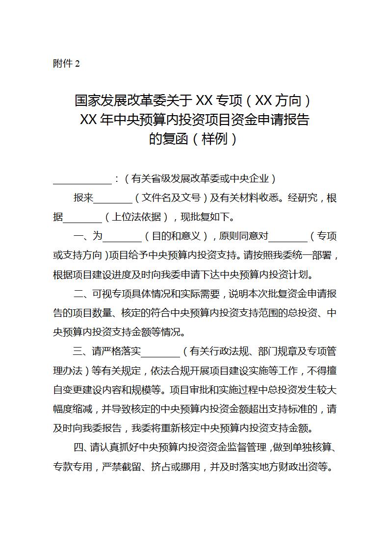 國家發(fā)改委|關(guān)于印發(fā)中央預(yù)算內(nèi)投資資金申請報告編寫和批復(fù)格式文本的通知