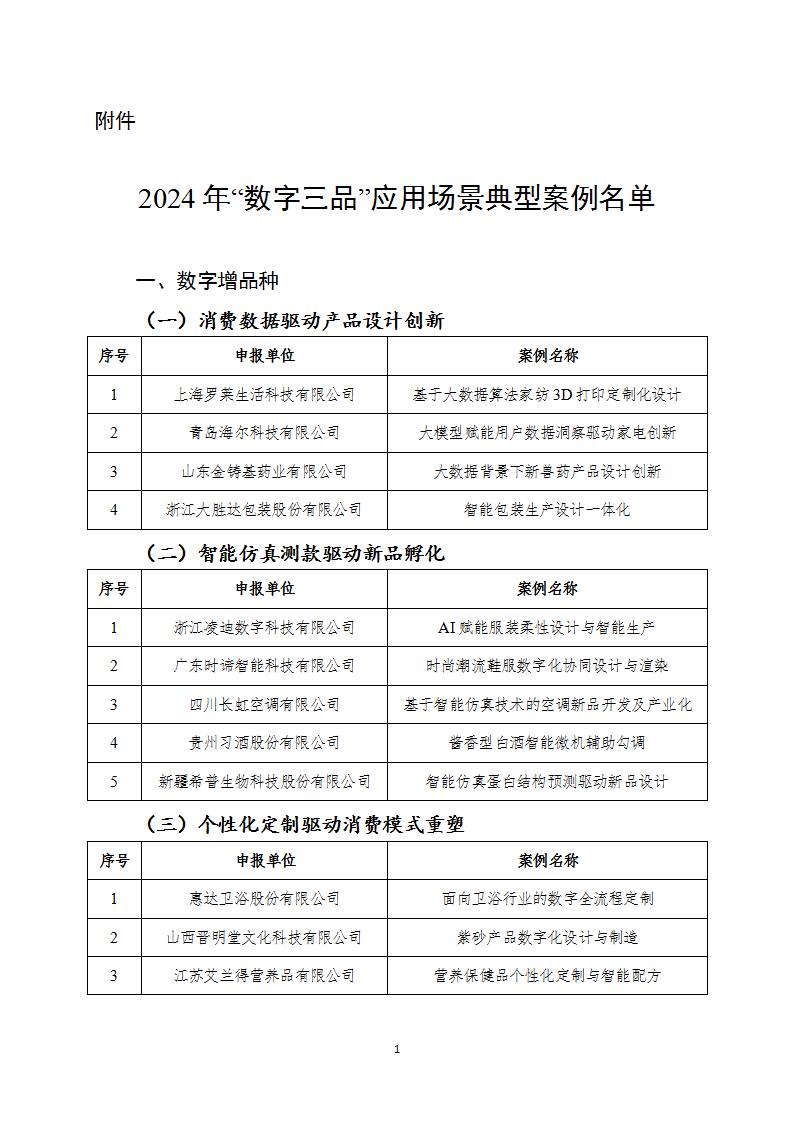 工信部關于發布2024年“數字三品”應用場景典型案例名單的通知