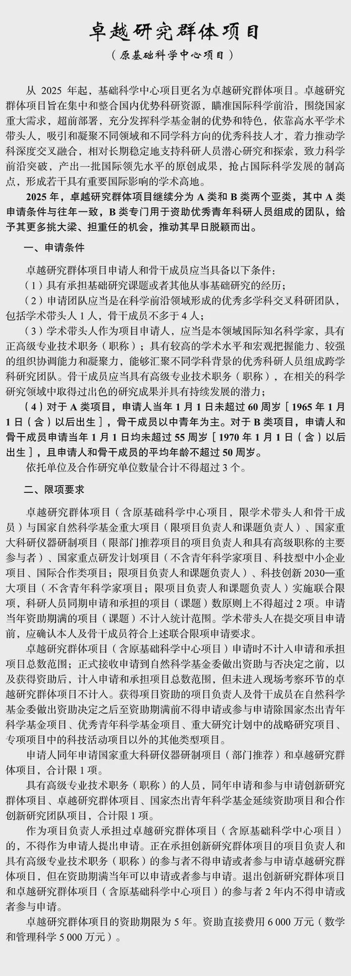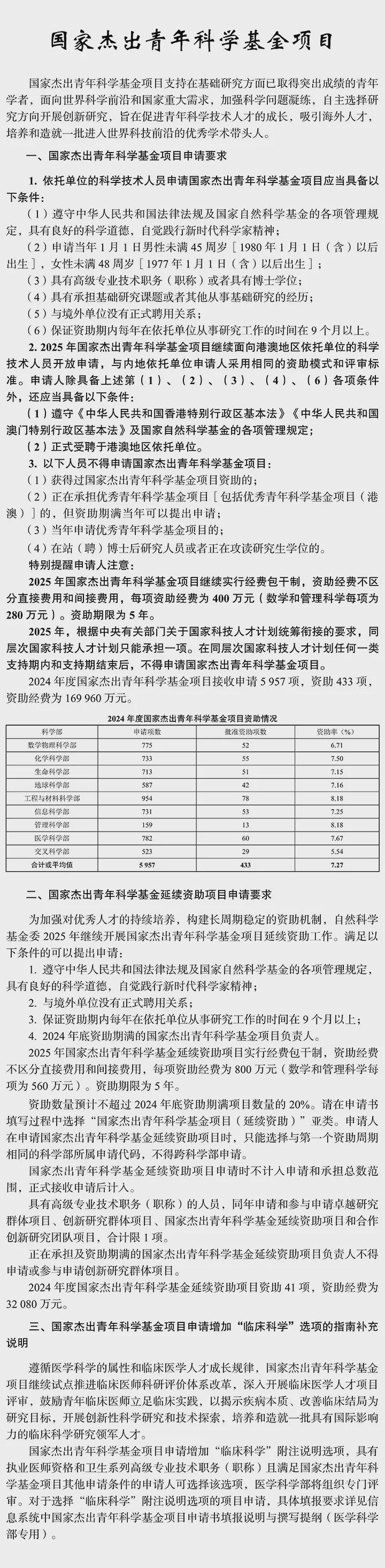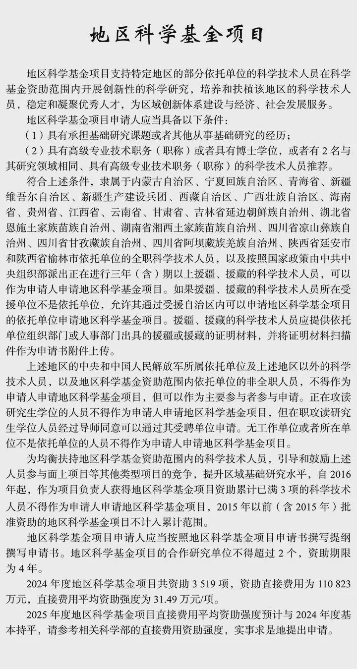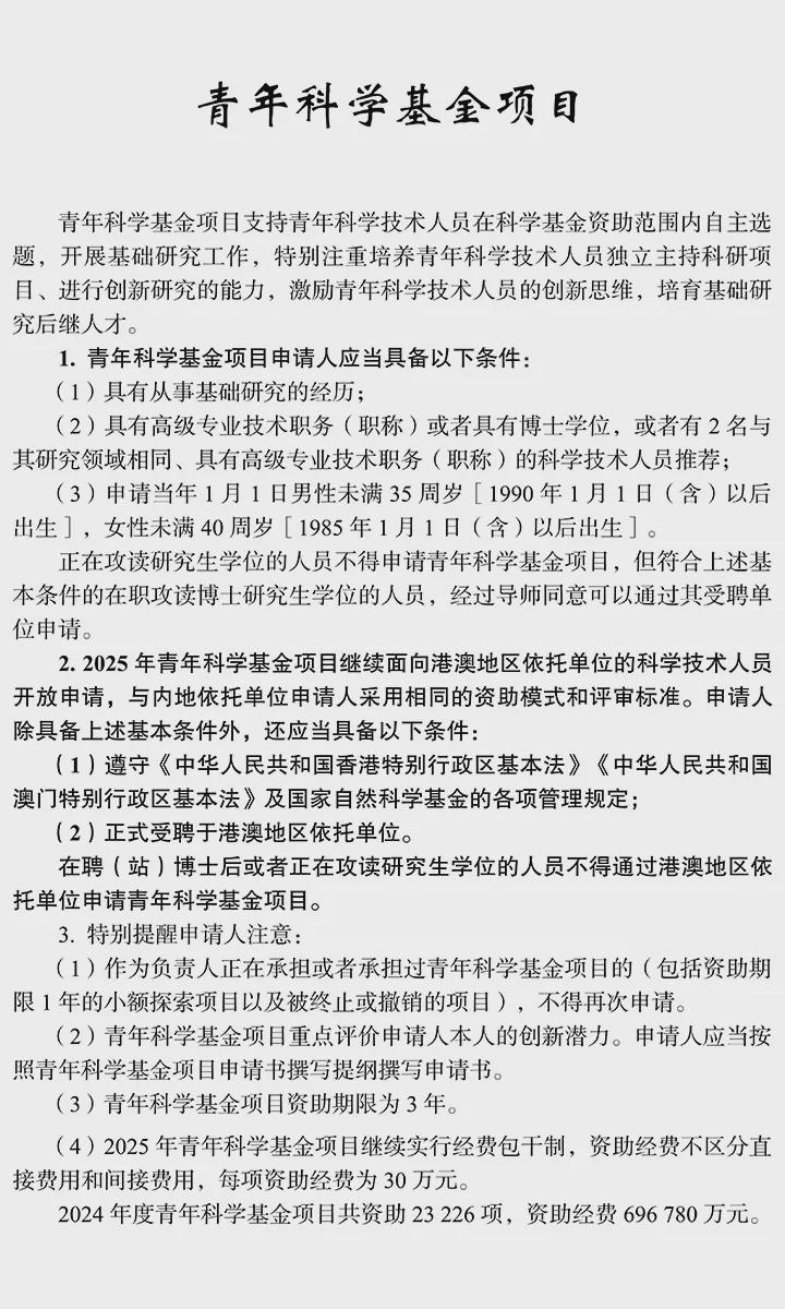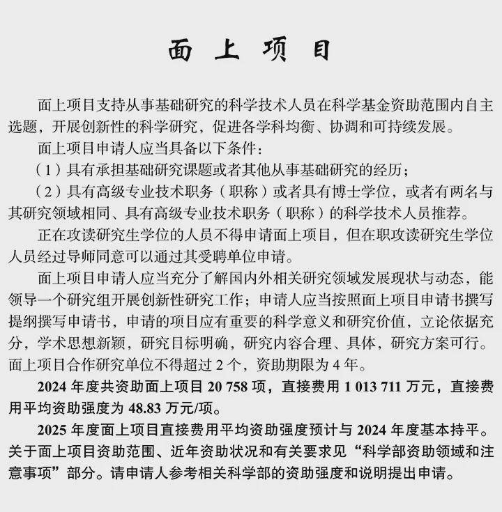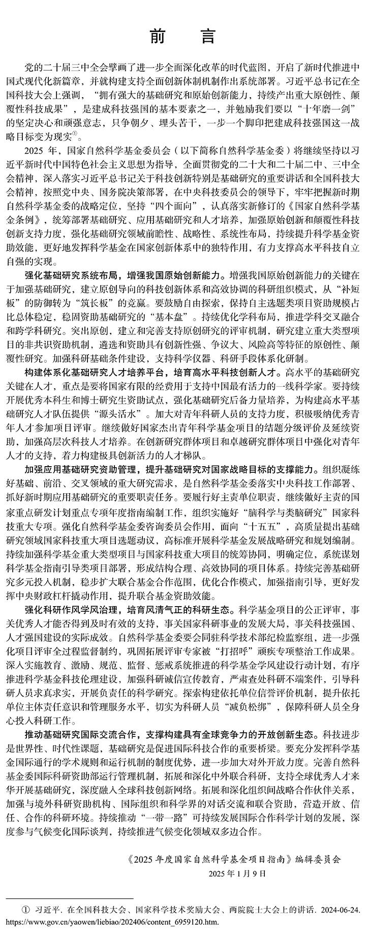 1月14日,國家自然科學基金委員會正式發布《2025年度國家自然科學基金項目指南》。