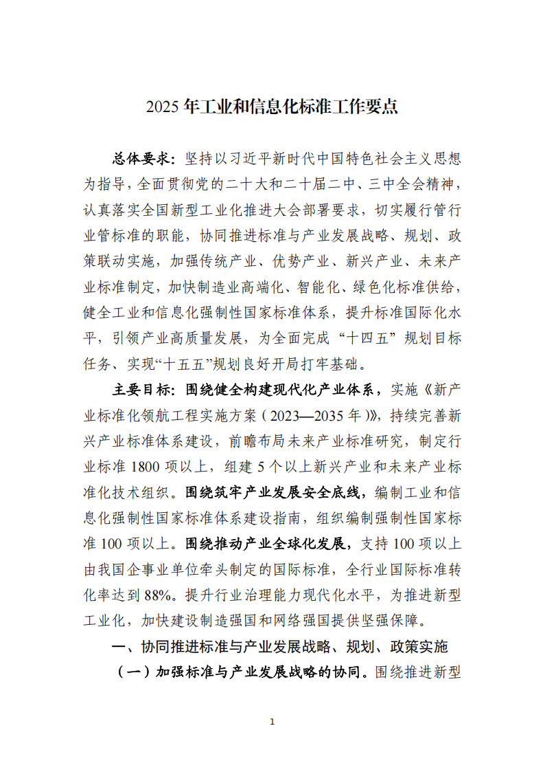 工信部|關于印發2025年工業和信息化標準工作要點的通知
