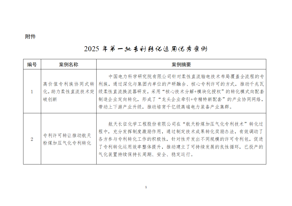 附件:2025年第一批專利轉(zhuǎn)化運(yùn)用優(yōu)秀案例