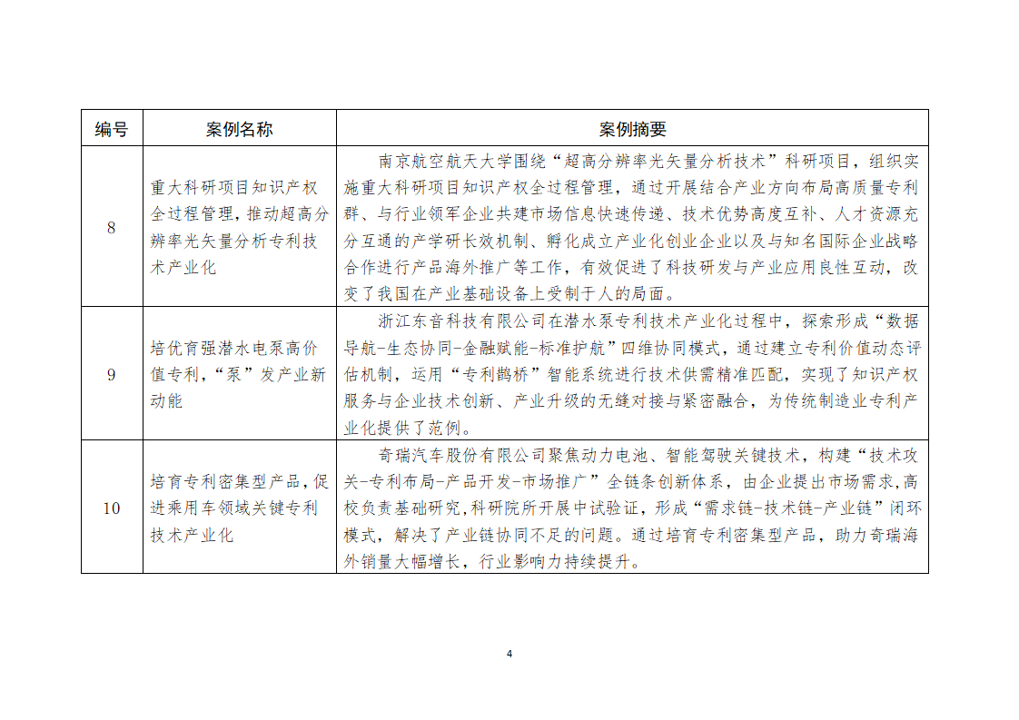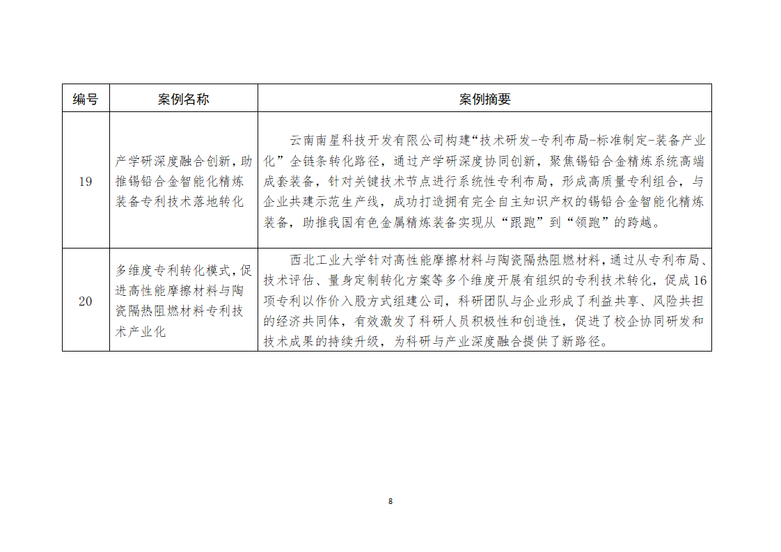 為深入推進(jìn)落實(shí)國務(wù)院辦公廳印發(fā)的《專利轉(zhuǎn)化運(yùn)用專項(xiàng)行動(dòng)方案(2023—2025年)》,總結(jié)推廣各地區(qū)推進(jìn)專利產(chǎn)業(yè)化的有效做法和典型經(jīng)驗(yàn),繼2024年遴選公布10個(gè)專利產(chǎn)業(yè)化優(yōu)秀案例和10個(gè)服務(wù)機(jī)構(gòu)促進(jìn)專利產(chǎn)業(yè)化優(yōu)秀案例后,2025年又在新一批轉(zhuǎn)化案例中遴選出20個(gè)專利轉(zhuǎn)化運(yùn)用優(yōu)秀案例,現(xiàn)予以公布。