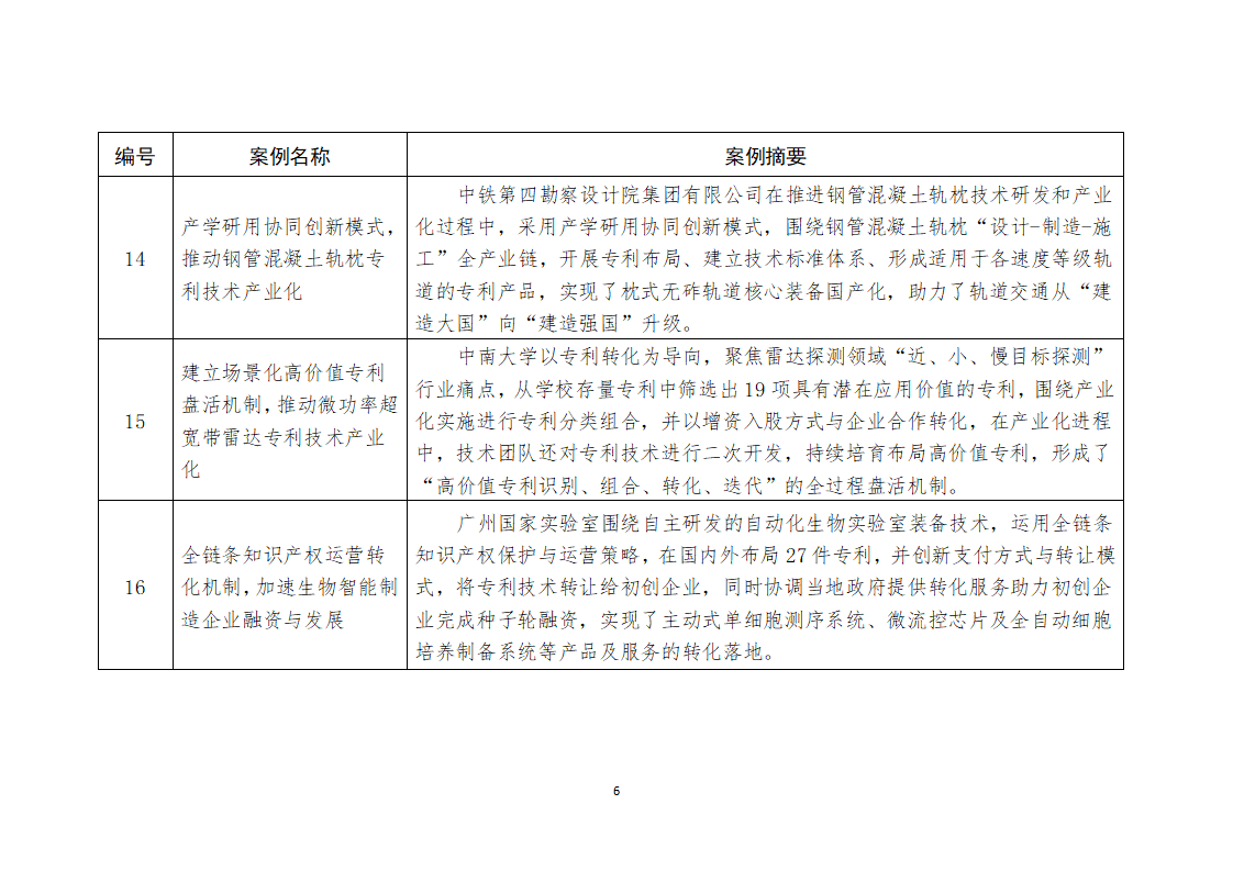 上述案例體現(xiàn)了各地區(qū)在推進(jìn)專利轉(zhuǎn)化運(yùn)用專項(xiàng)行動(dòng)重點(diǎn)任務(wù)落地過程中的有益實(shí)踐,創(chuàng)新性強(qiáng)、成效突出、具備復(fù)制推廣價(jià)值。請(qǐng)各省級(jí)知識(shí)產(chǎn)權(quán)局積極宣傳推廣案例,組織高校和科研機(jī)構(gòu)、企業(yè)、服務(wù)機(jī)構(gòu)等各類主體開展交流學(xué)習(xí),借鑒先進(jìn)經(jīng)驗(yàn),大力推動(dòng)專利產(chǎn)業(yè)化,加快創(chuàng)新成果向現(xiàn)實(shí)生產(chǎn)力轉(zhuǎn)化。