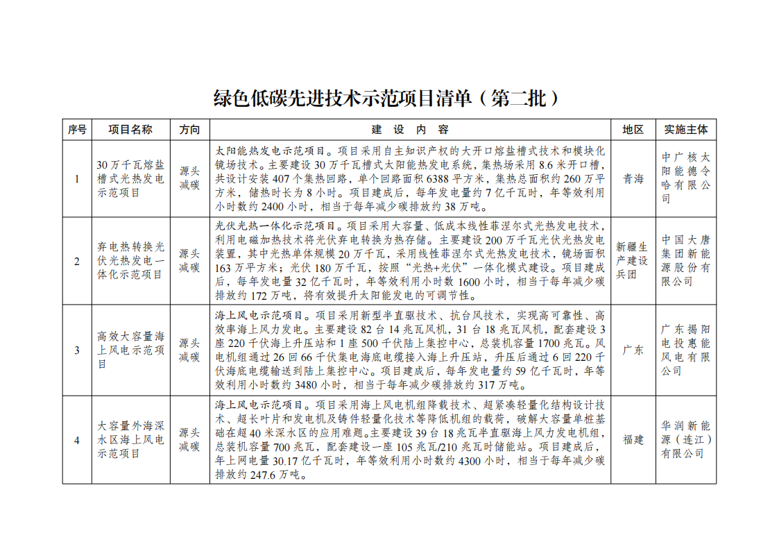 ??為貫徹落實黨中央、國務院決策部署,加快綠色低碳先進技術示范應用和推廣,按照《綠色低碳先進技術示范工程實施方案》(發改環資〔2023〕1093號)工作部署,我委會同有關部門組織開展了第二批綠色低碳先進技術示范項目申報遴選工作。經項目單位申報、地方篩選、第三方評審、有關部門和地方復核、公開征求意見等環節,確定了第二批示范項目清單,現予公布,并就有關事項通知如下。