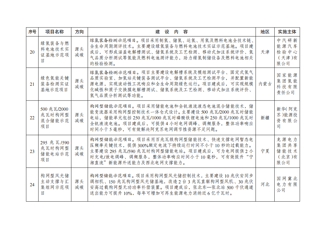 ??二、強化全流程監督管理。各地區發展改革委要持續跟蹤調度示范項目建設進展,按期保質完成建設任務。對于建設進展緩慢、成效不及預期的項目,要加強督促指導幫扶,整改后仍未達到要求的,調整退出清單。根據我委調度和核查,將第一批示范項目清單中的第19項“基于純氫燃氣輪機創新的‘電—氫—電’新模式實證示范項目”(實施主體:國家電投集團北京重燃能源科技發展有限公司、內蒙古霍煤鴻駿鋁電有限責任公司)退出綠色低碳先進技術示范工程。