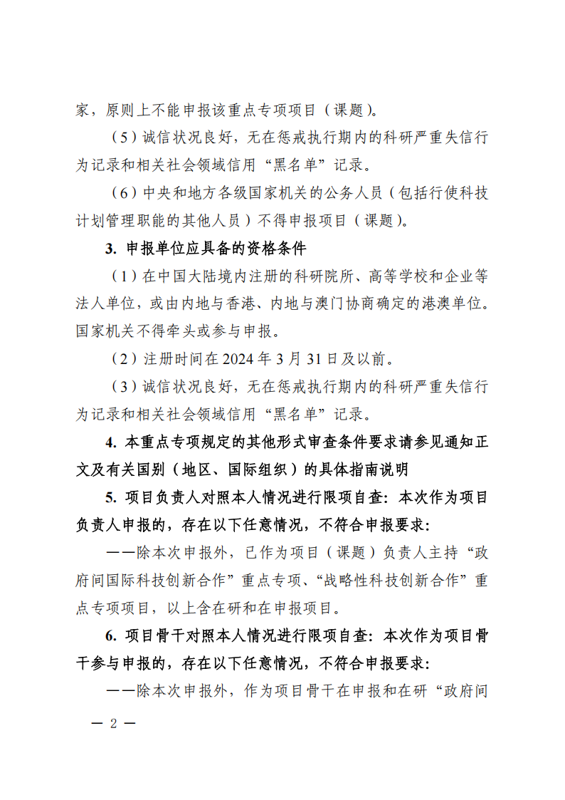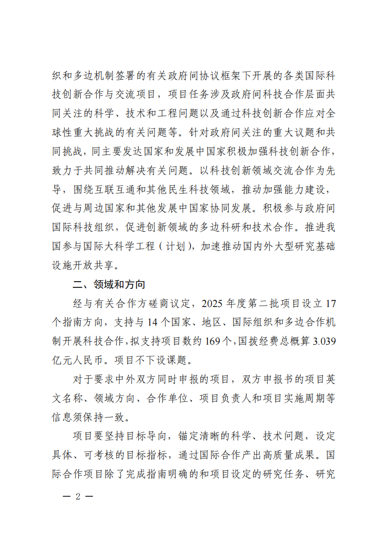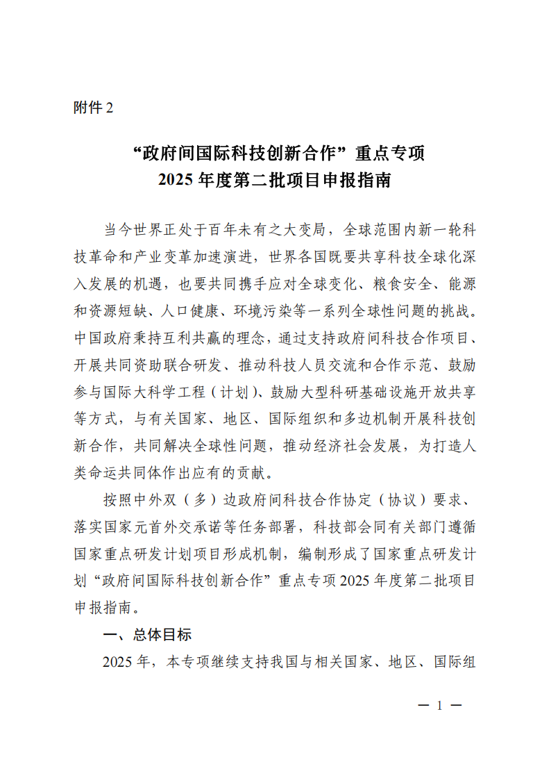 2.“政府間國際科技創新合作”重點專項2025年度第二批項目申報指南