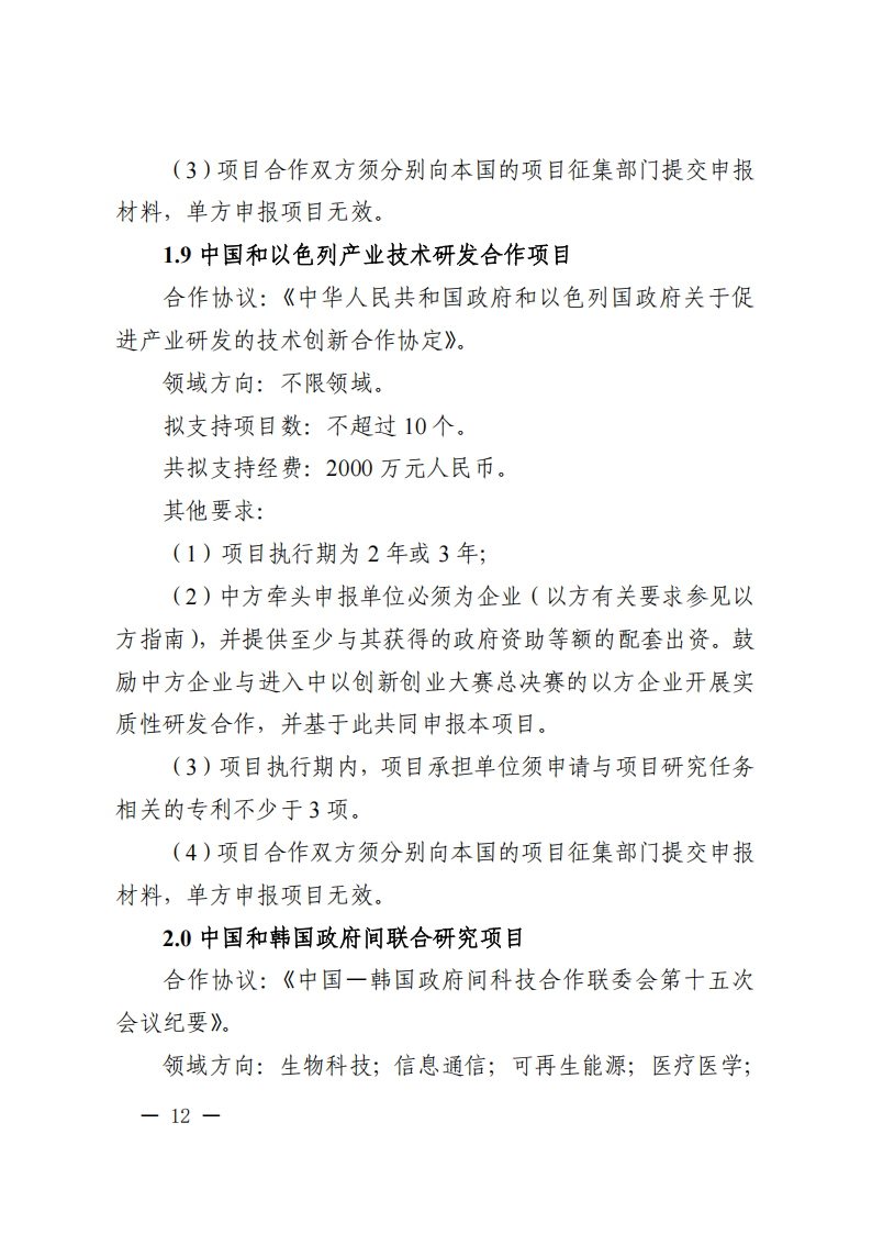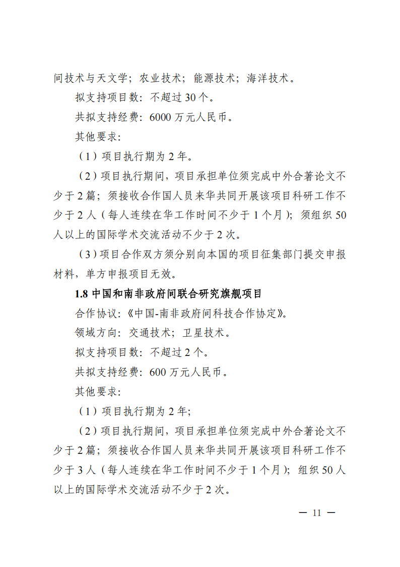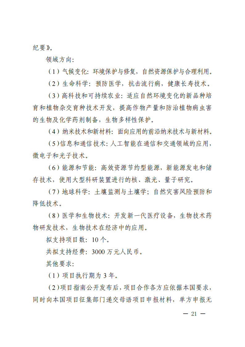 9. 政府間專項項目主要國外合作單位原則上為在國外注冊滿1年的獨立法人,且非中方機構的分支機構。項目牽頭申報單位必須與國外合作單位就本次項目申報簽訂合作協議。
