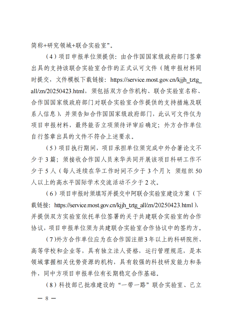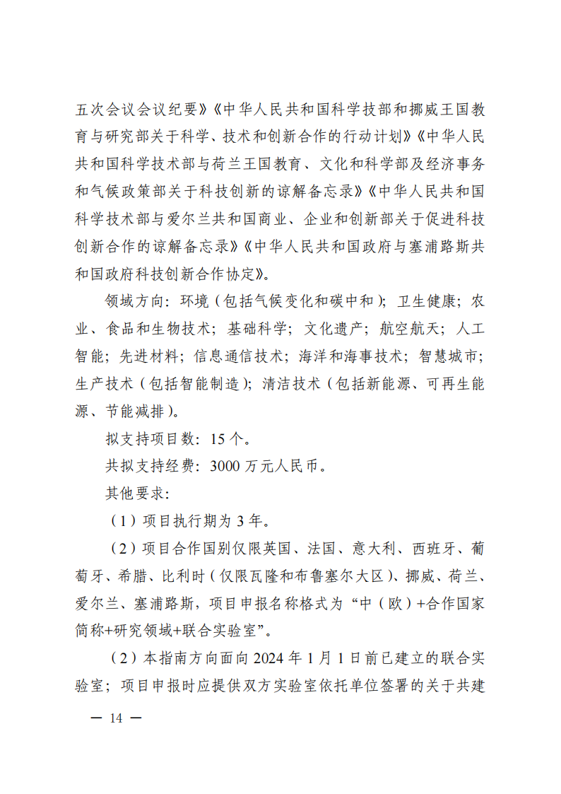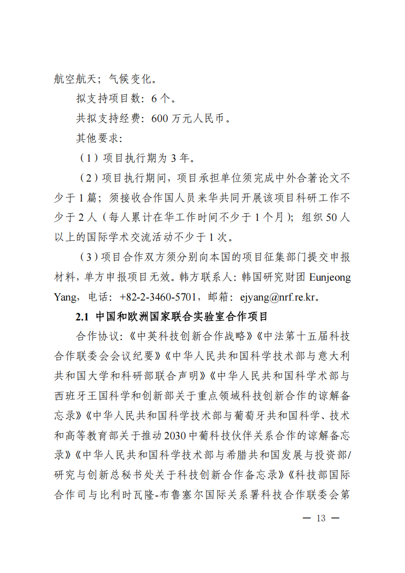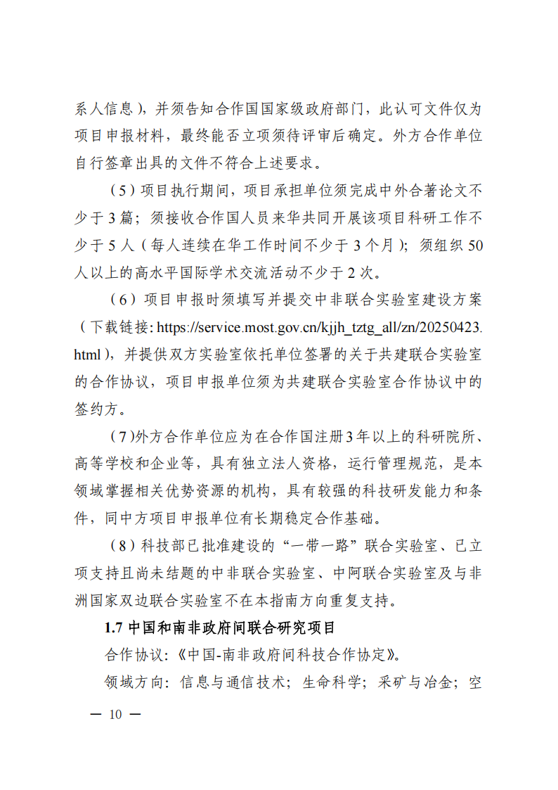 9. 政府間專項項目主要國外合作單位原則上為在國外注冊滿1年的獨立法人,且非中方機構的分支機構。項目牽頭申報單位必須與國外合作單位就本次項目申報簽訂合作協議。